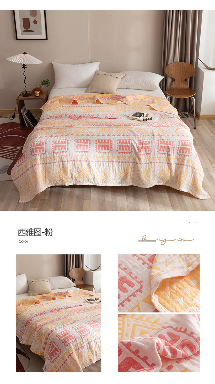商品名称:朴尔2022新品塞尚风格全棉水洗棉三层纱布毛巾被 西雅图-粉