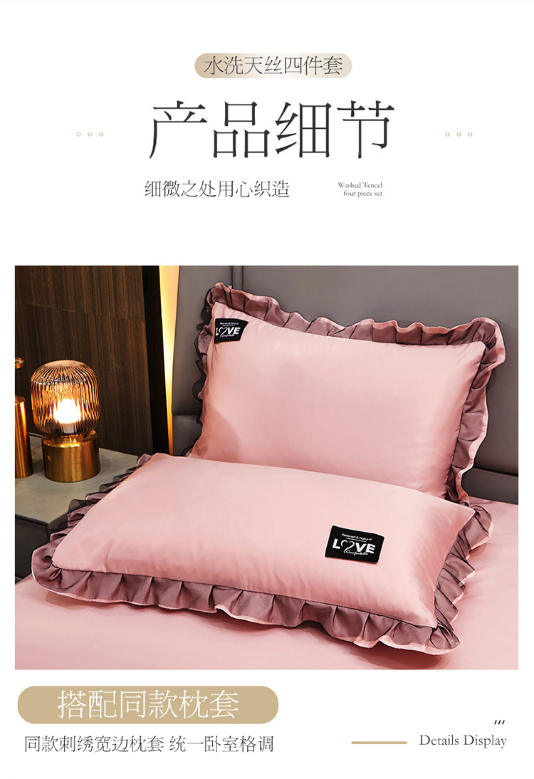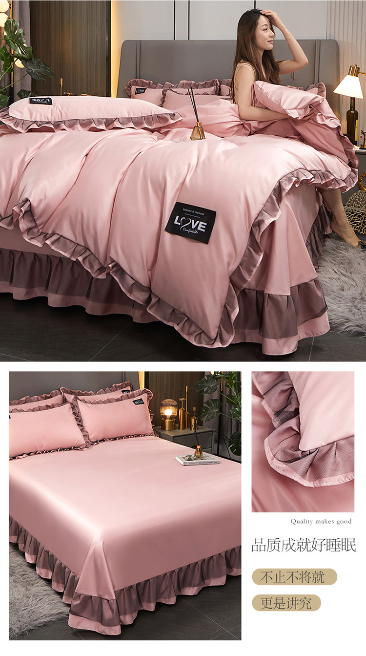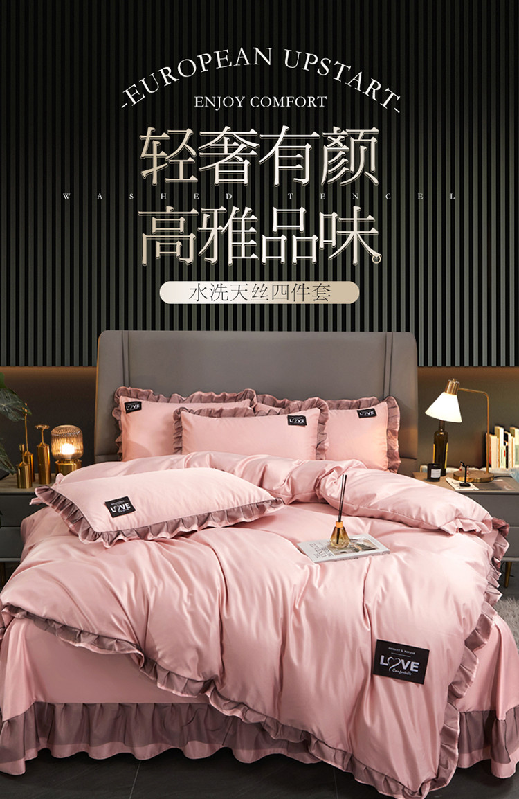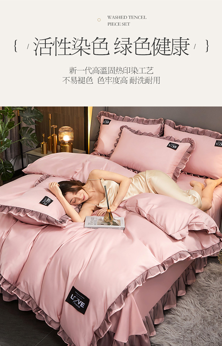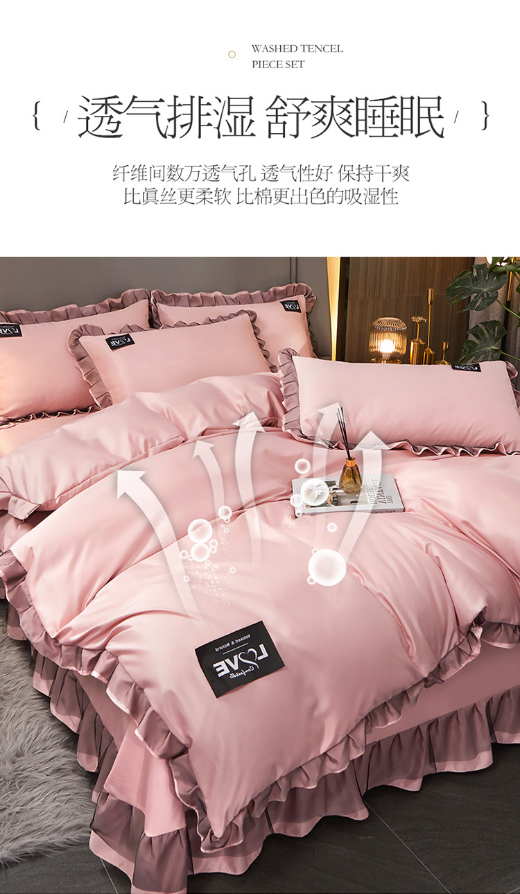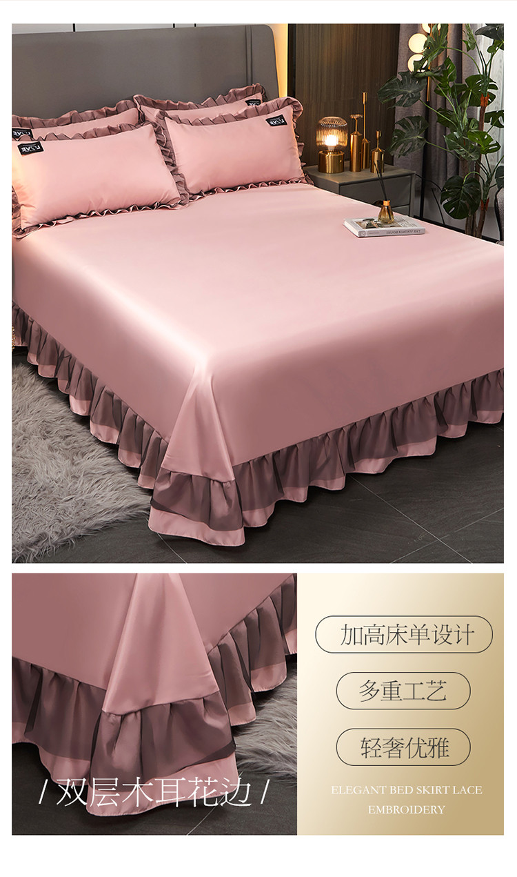 当前位置: 91家纺网 > 商品网购 > 床品套件 > 四件套 > 水洗真丝四件套 > 找底底2023新款床裙款水洗真丝天丝四件套 豆沙色