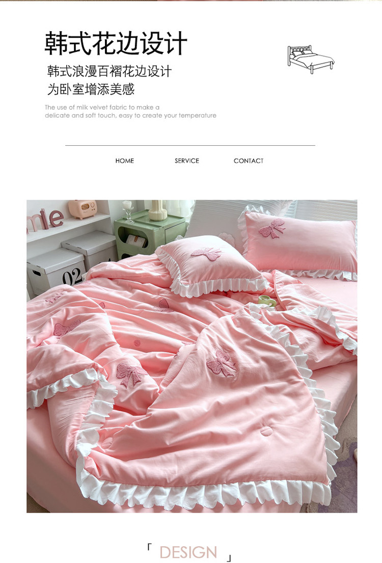 (总)沐慕 2025新款200克牛奶绒贴布绣四件套,咖格布布,粉格淑女喵,粉嫩淑女喵