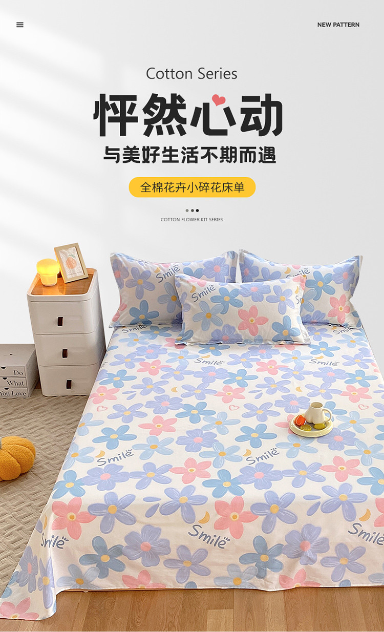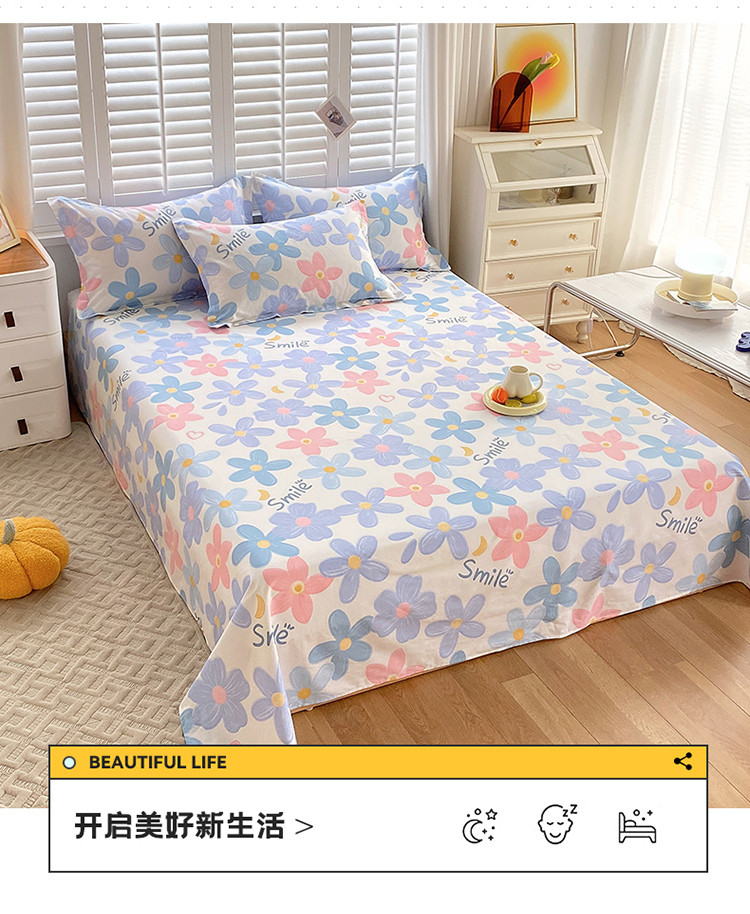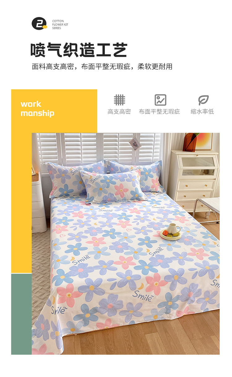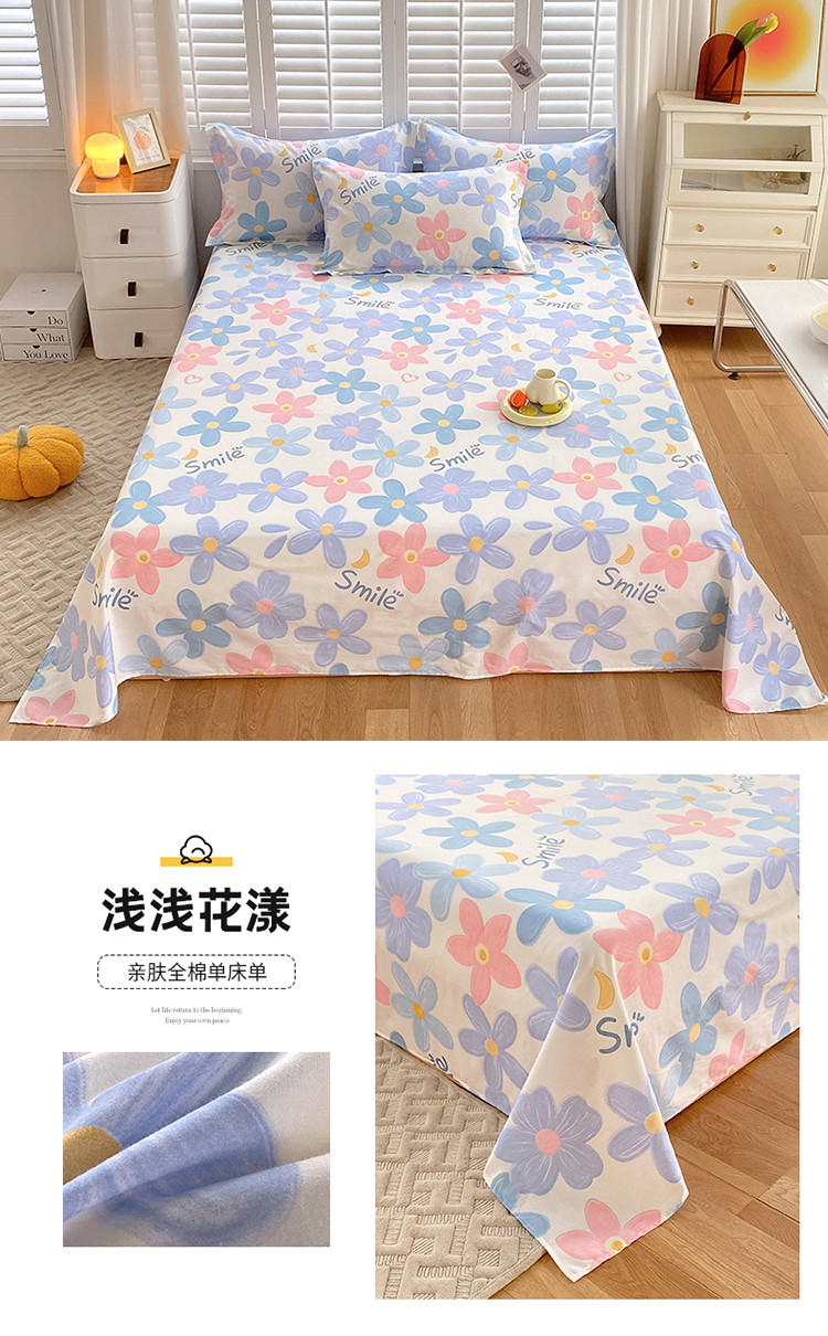 商品名称:拾物记 2022新款A类12868全棉喷气印花系列单床单 浅浅花漾