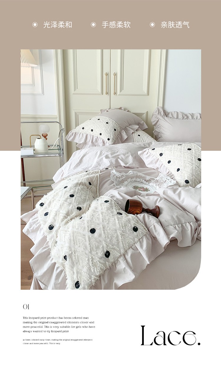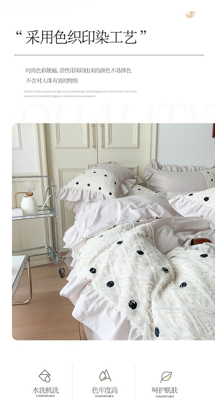 (总)玛奇朵 2025新款韩系少女全棉立体提花四件套-,青纱粉黛