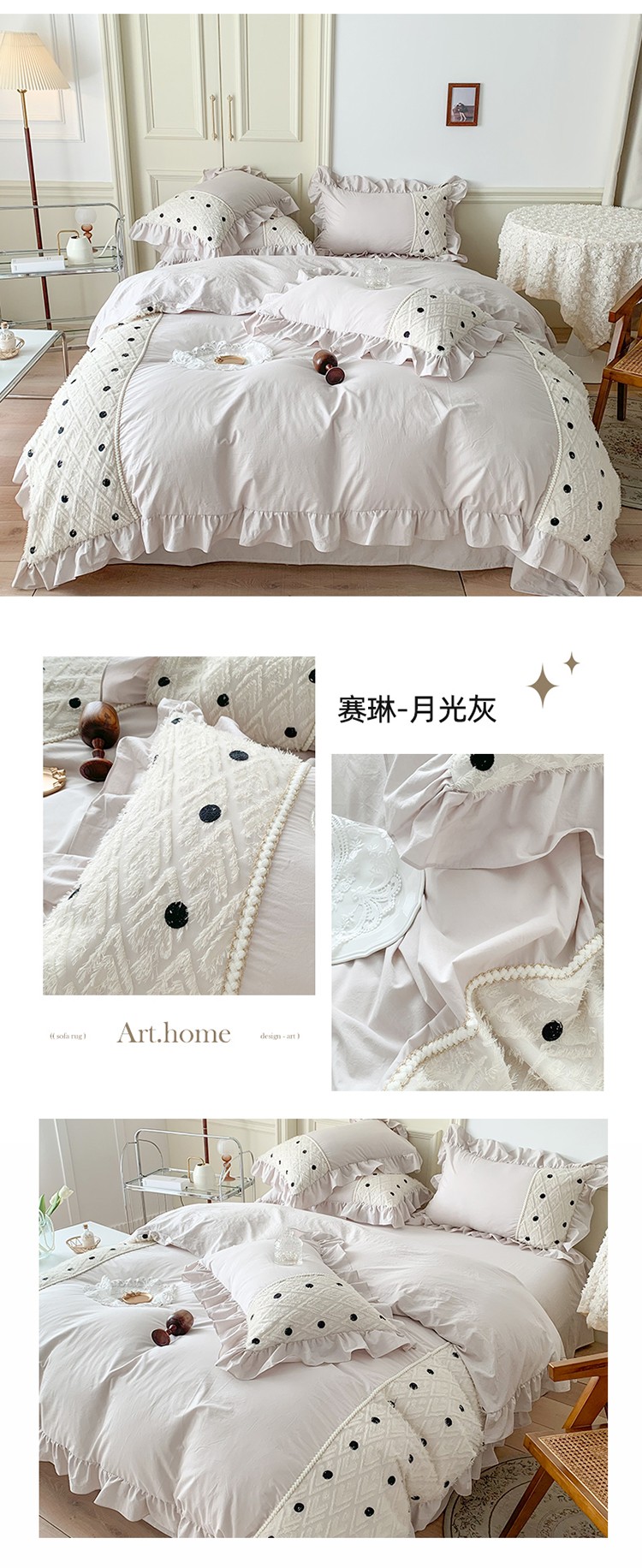 商品名称:玛奇朵 2022新款韩式小香风40S水洗棉-赛琳系列 赛琳-月光灰