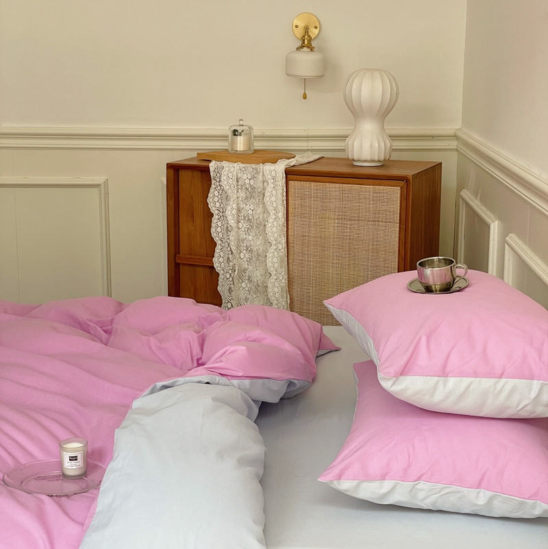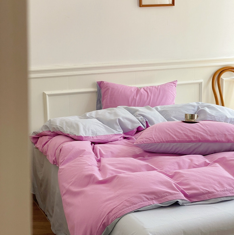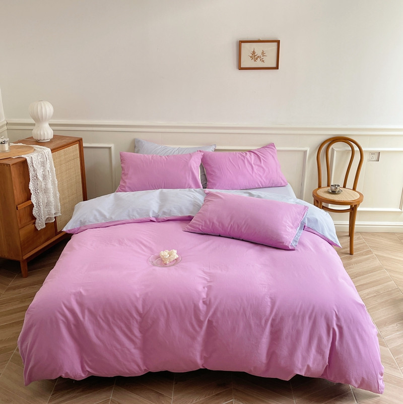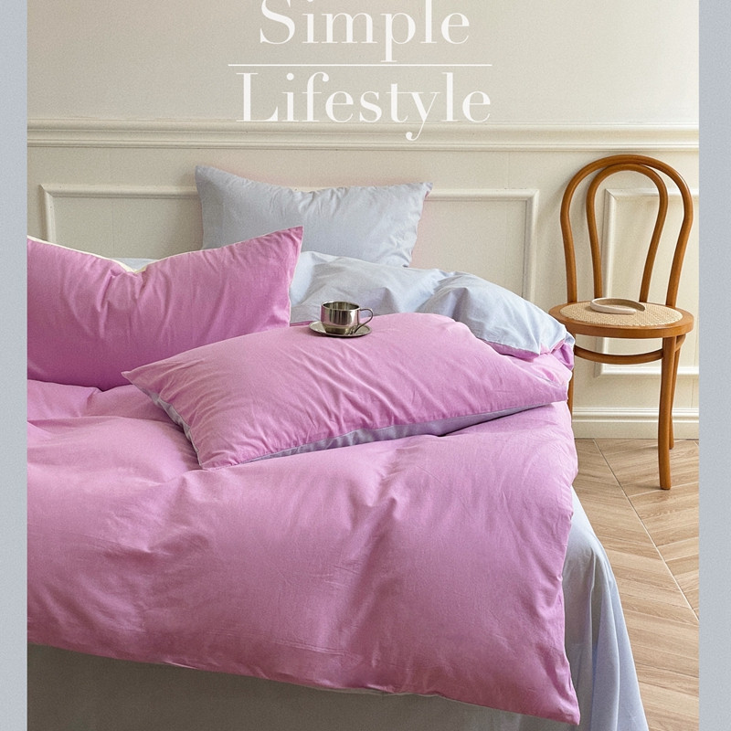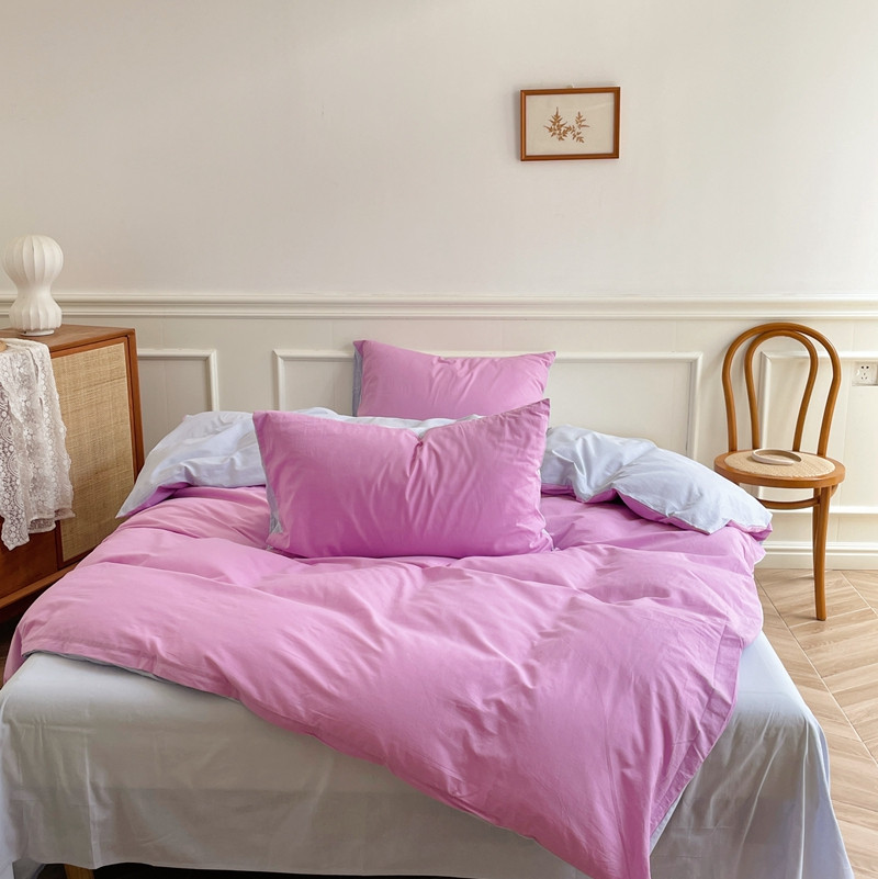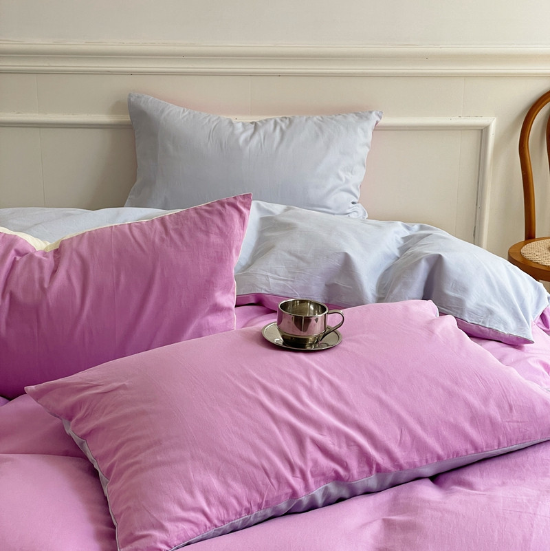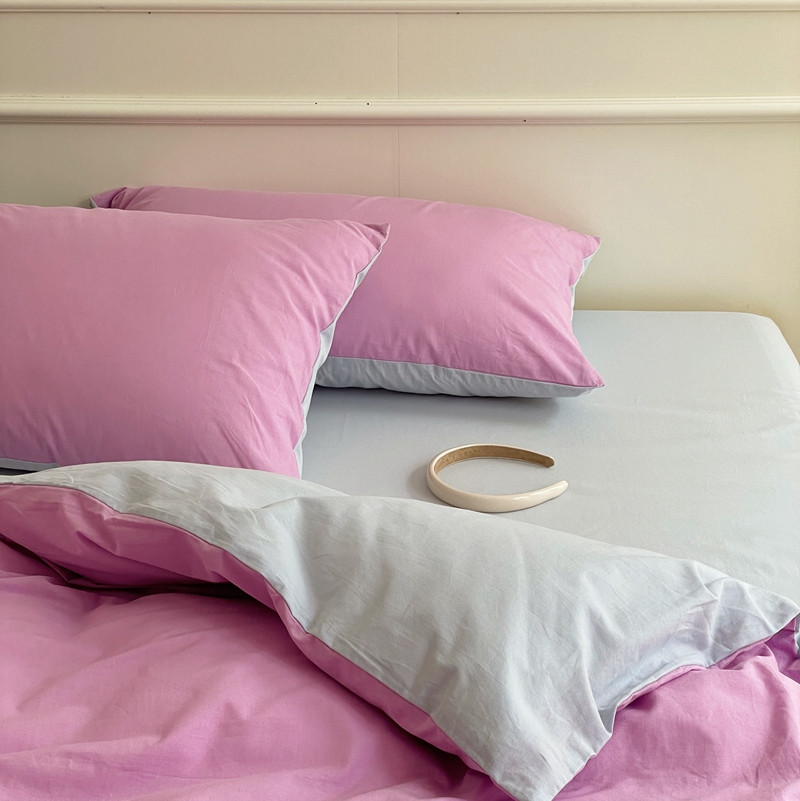 当前位置: 91家纺网 > 商品网购 > 床品套件 > 四件套 > 水洗棉四件套 > 窝米 2022夏季新品素色双拼水洗棉四件套 神仙紫双拼