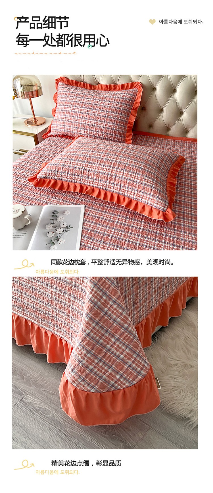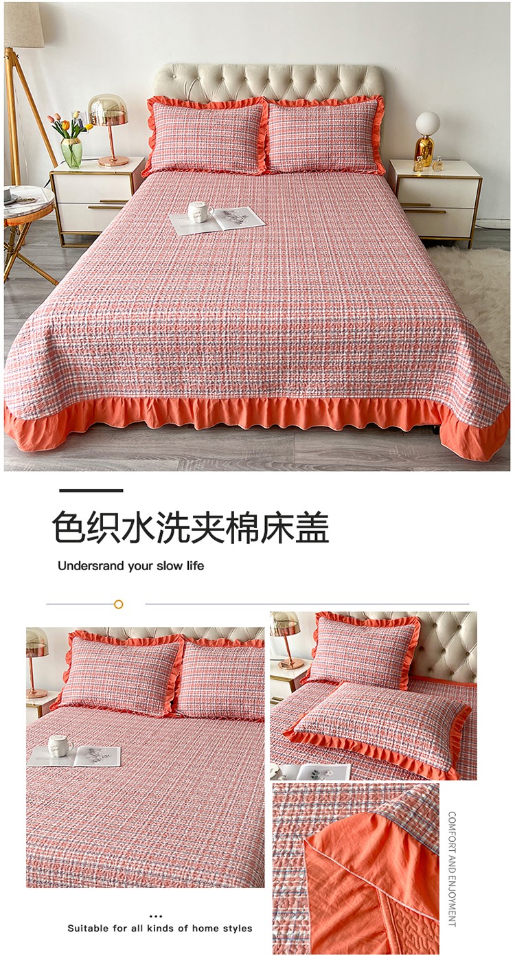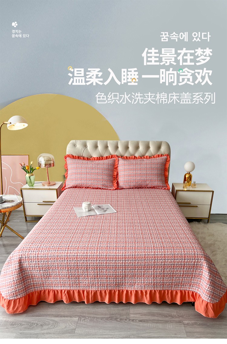 (总)源舜家纺 2025新款色织棉简约韩系花边床盖三件套,简约灰,简约粉,简约绿,简约驼,简约蓝