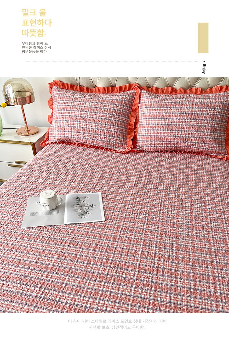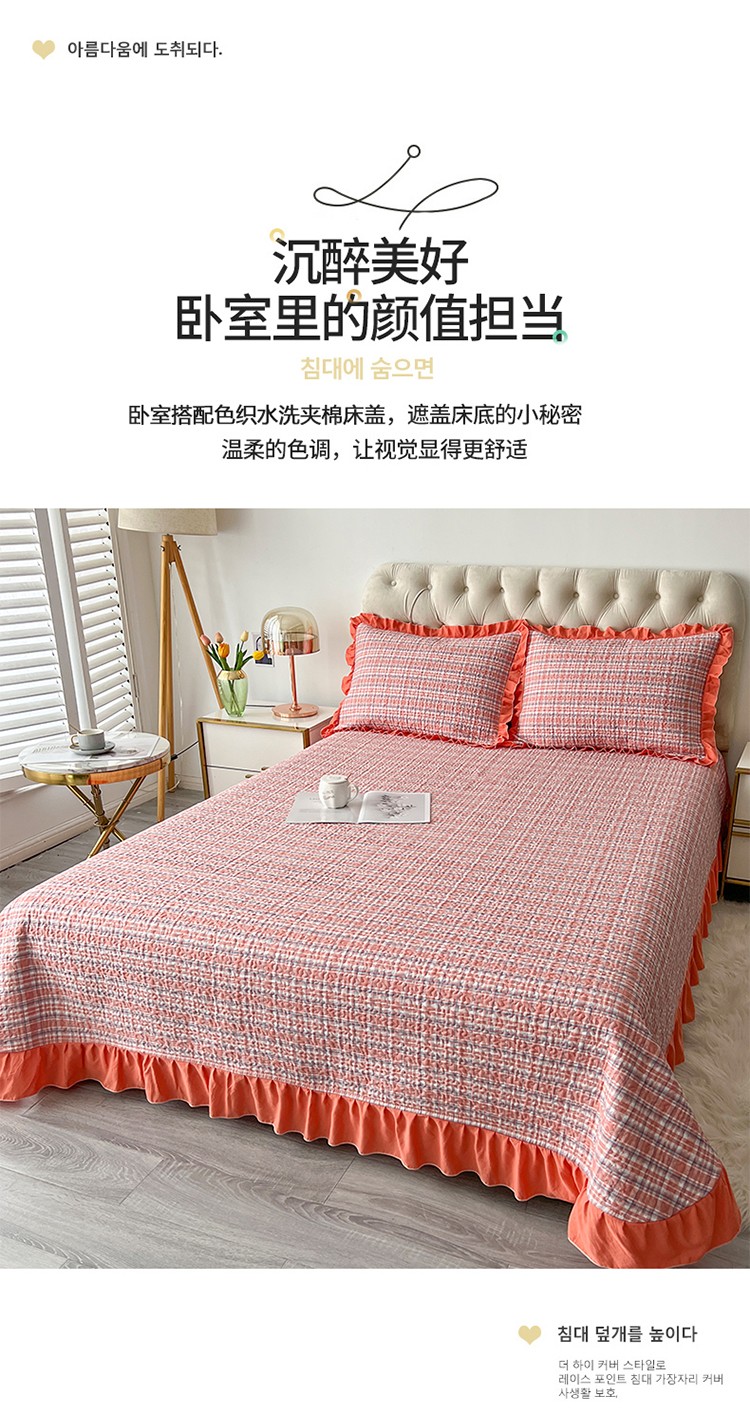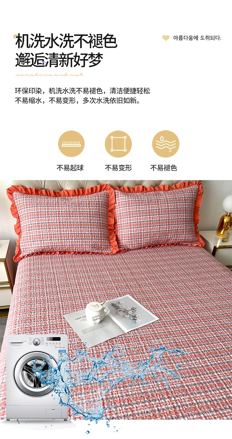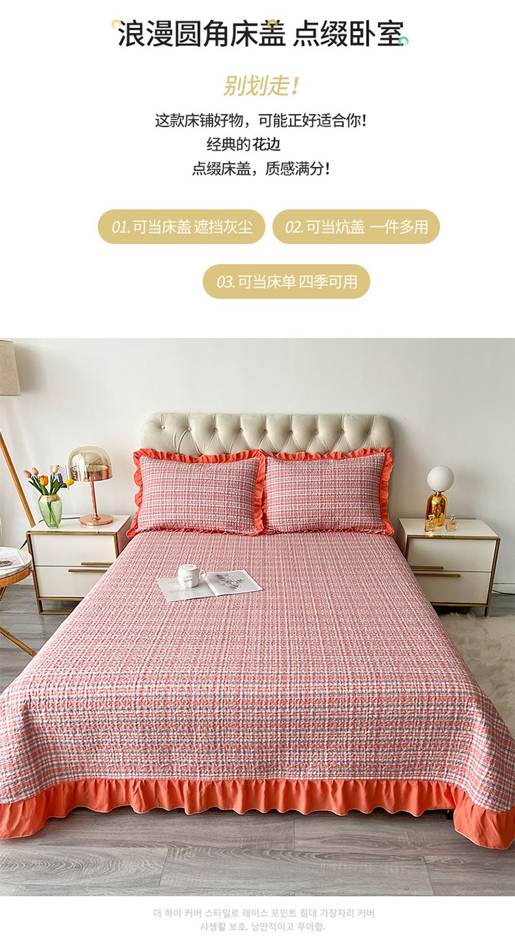 (总)源舜家纺 2025新款色织棉简约韩系花边床盖三件套,简约灰,简约粉,简约绿,简约驼,简约蓝