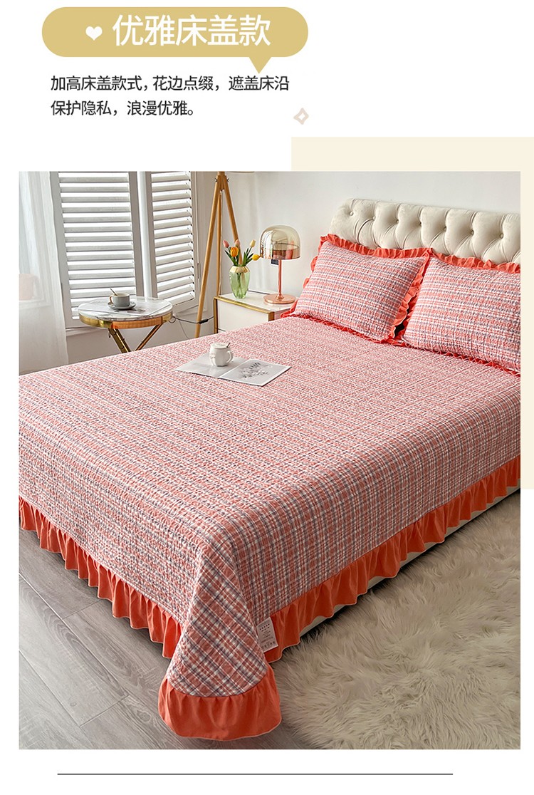 (总)源舜家纺2025新款色织水洗棉全棉法式花边款床盖,色织粉格,色织黄格,色织灰白格,色织灰咖格,色织蓝格,色织绿格,色织深蓝格