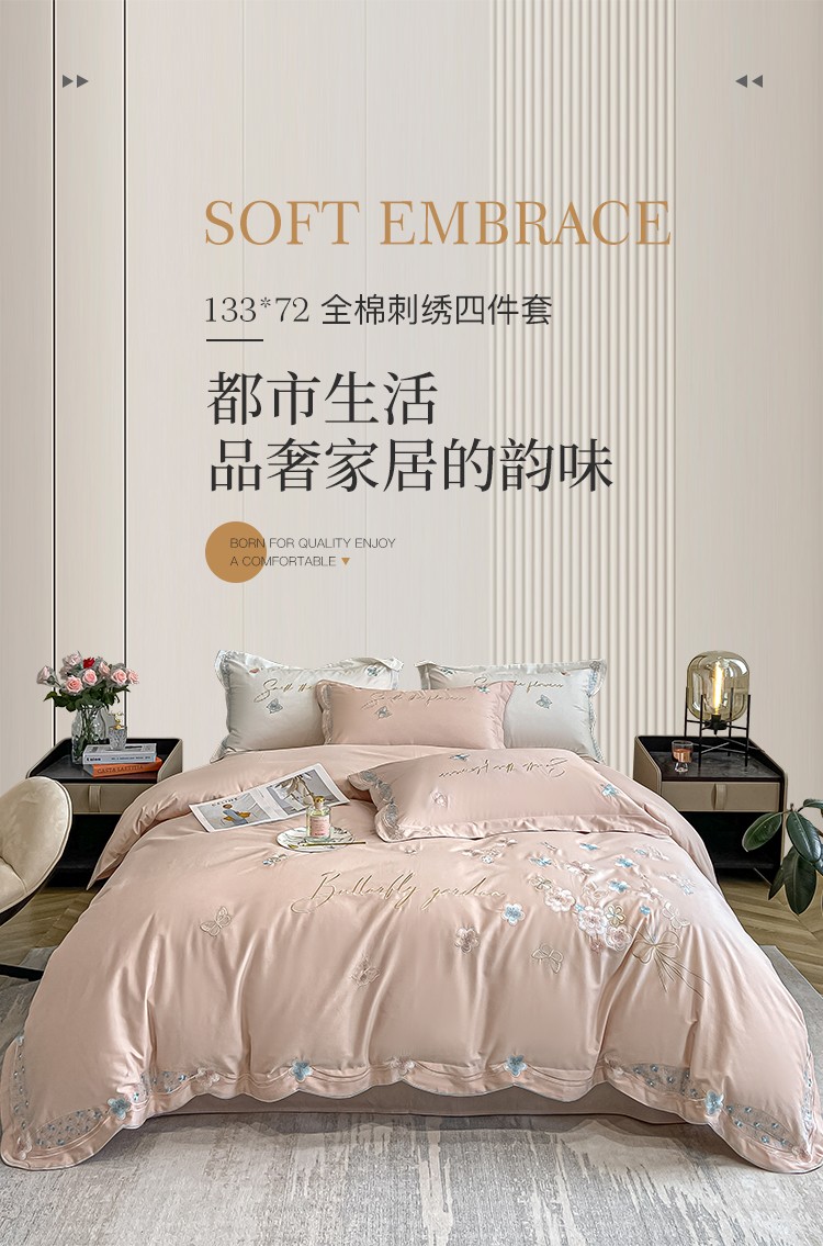 (总) 理想家 2022新款13372全棉刺绣四件套-手捧花