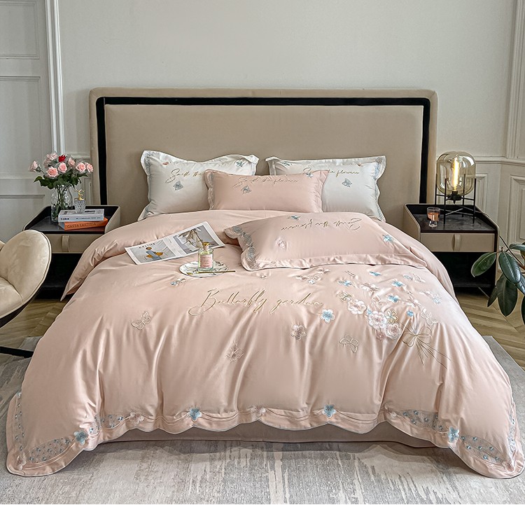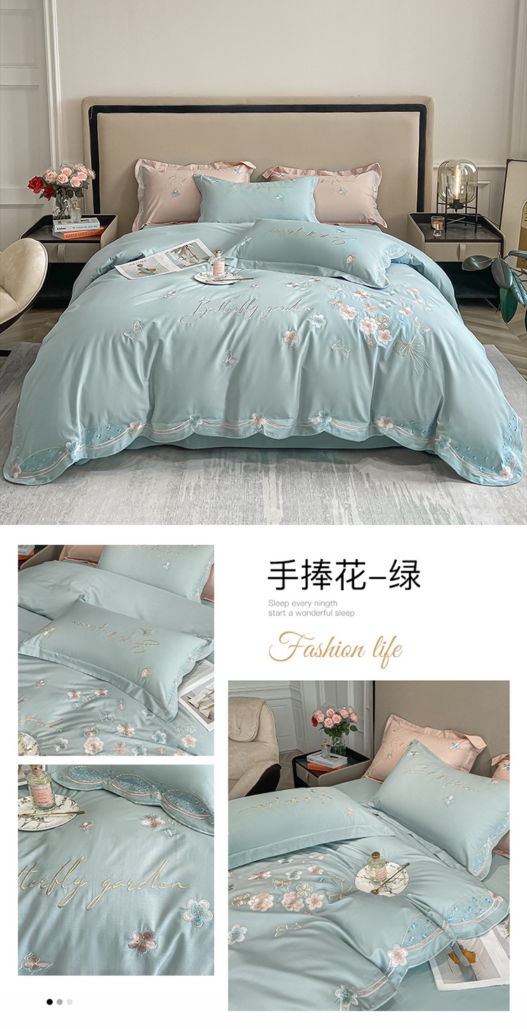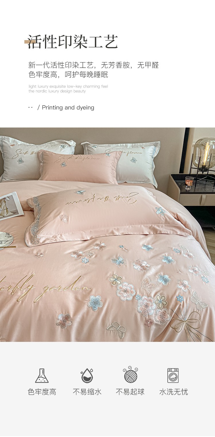 (总)理想家家纺 理想家家纺 2025新款云朵棉水洗真丝刺绣四件套,翩羽白,翩羽粉,翩羽蓝,翩羽绿,翩羽紫