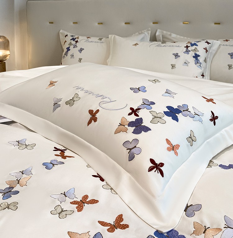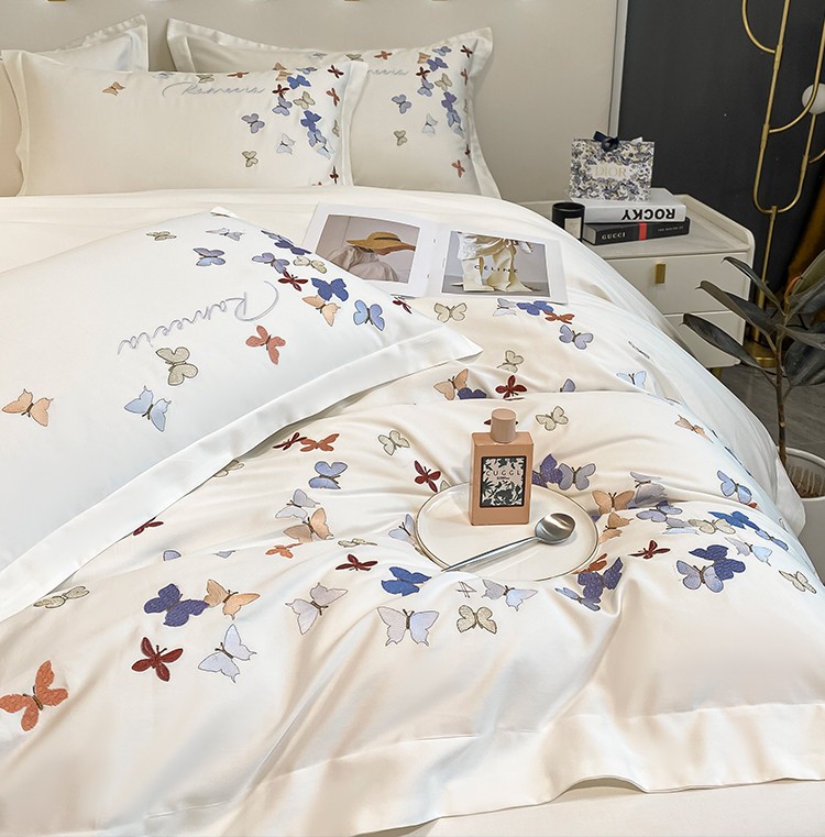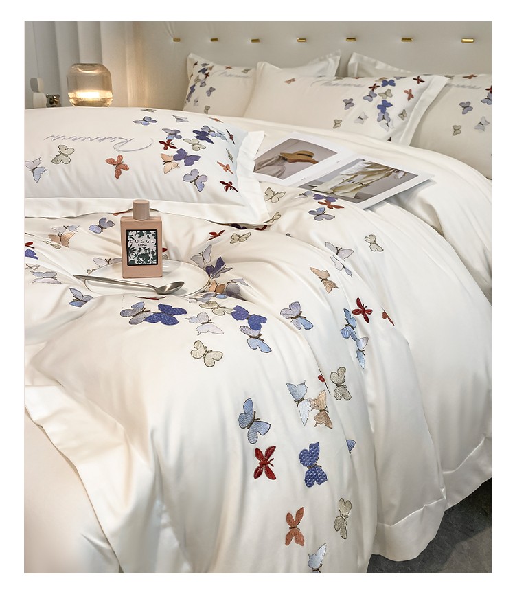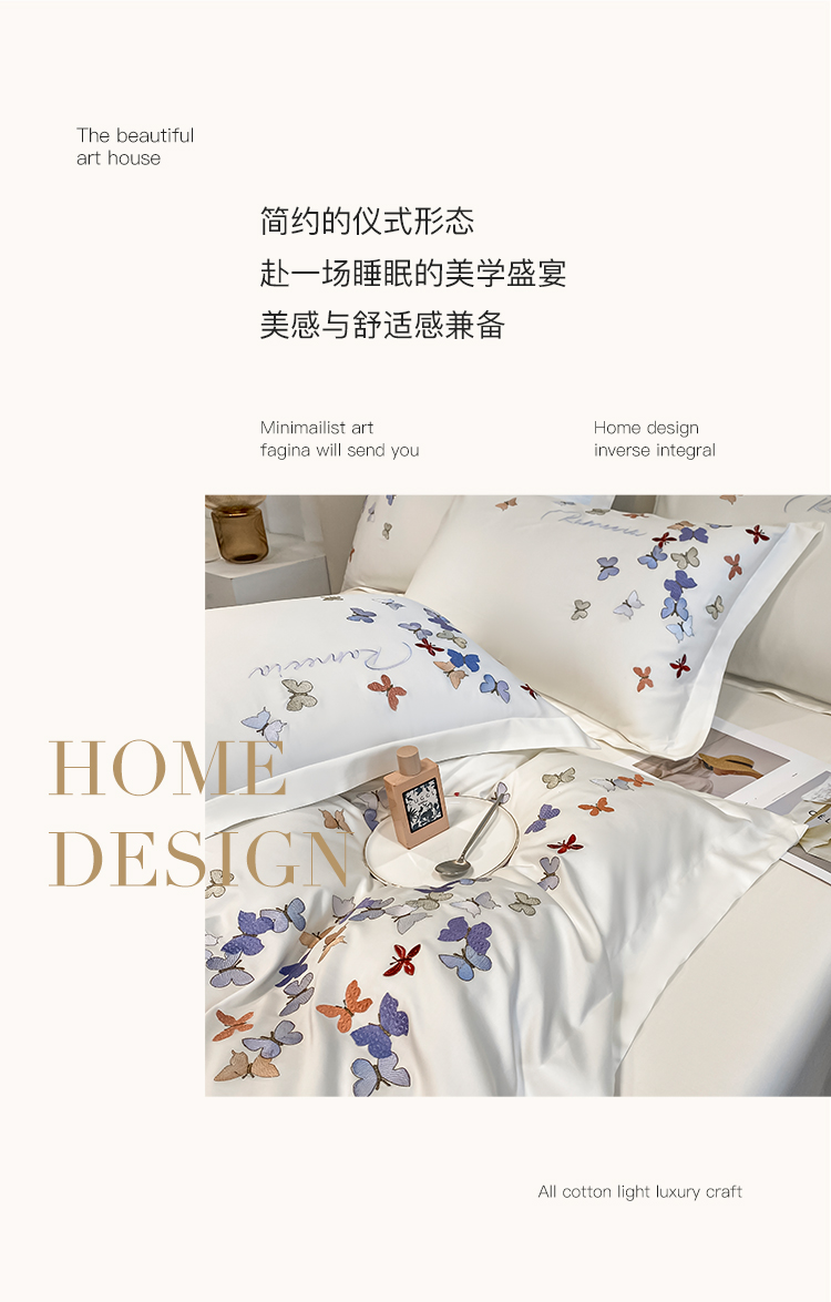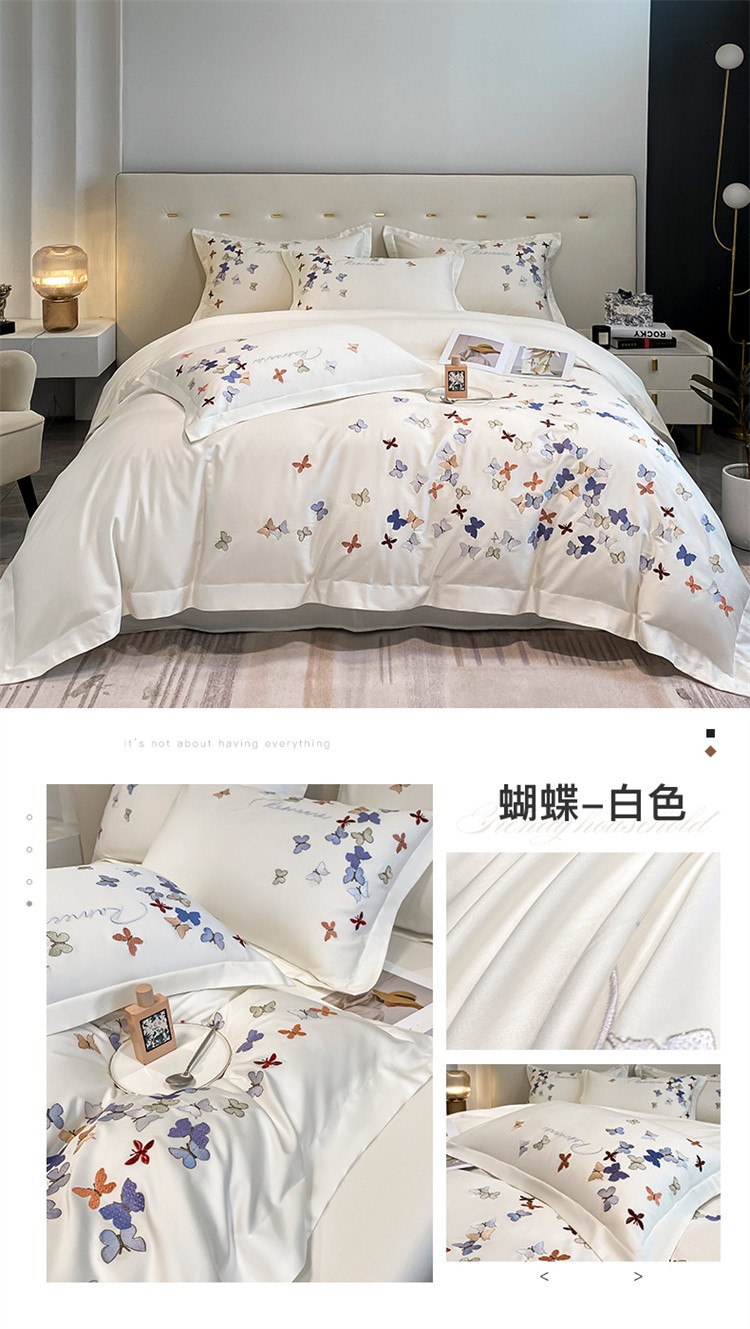 理想家 2022新款13372全棉刺绣四件套-蝴蝶 白色