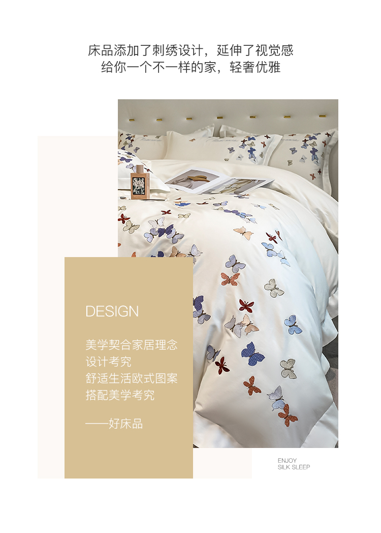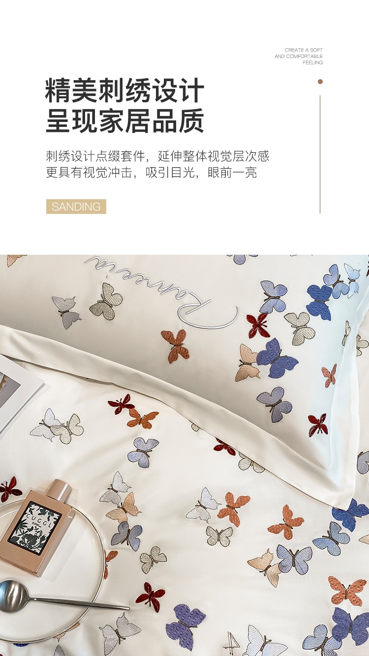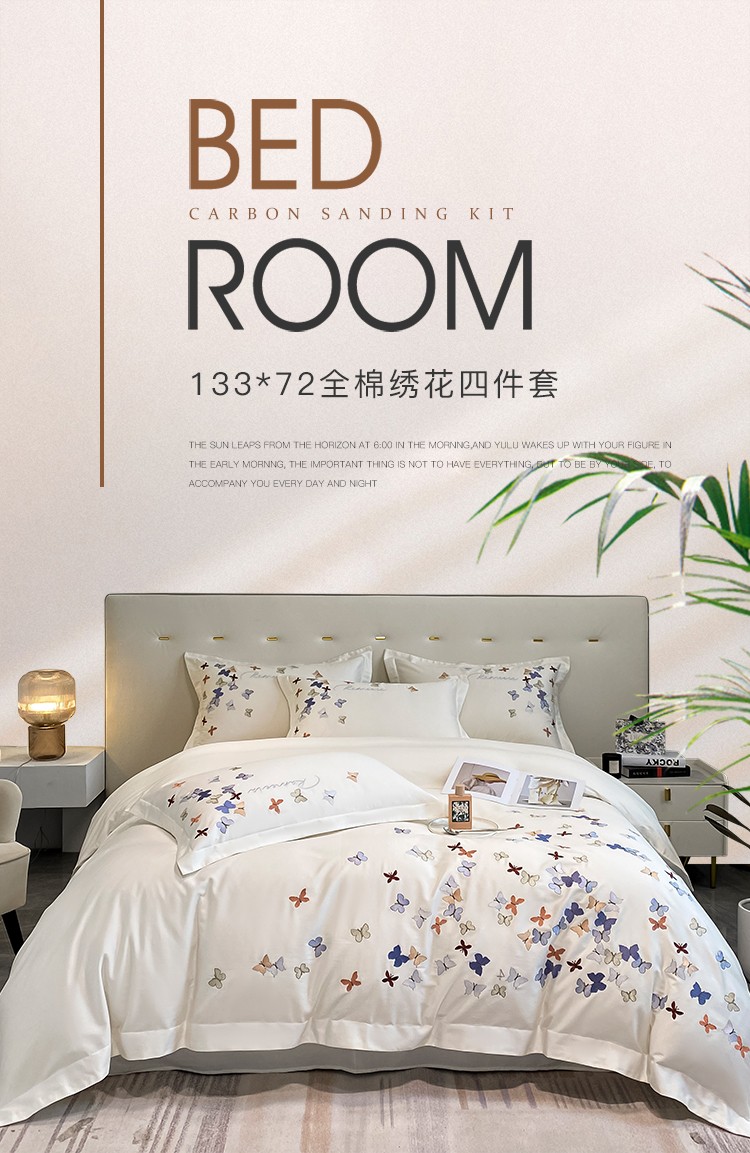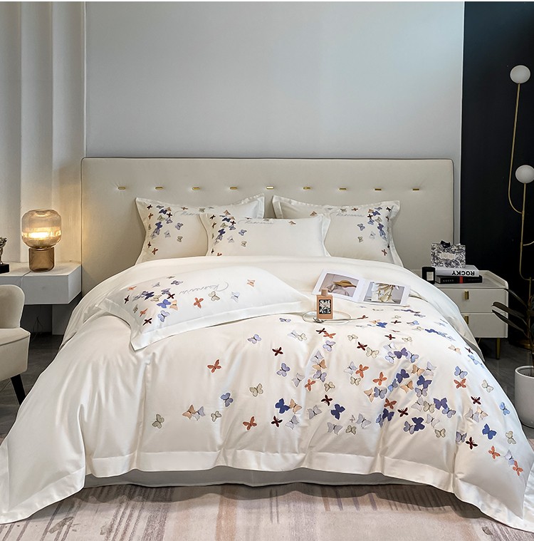 理想家 2022新款13372全棉刺绣四件套-蝴蝶 白色