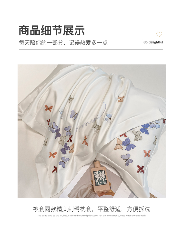 商品名称:理想家 2022新款13372全棉刺绣四件套-蝴蝶 白色