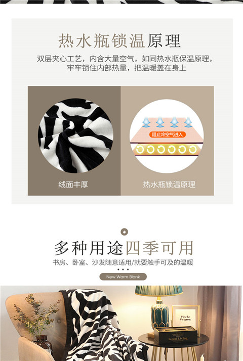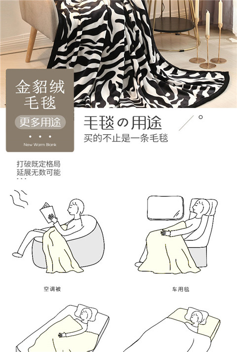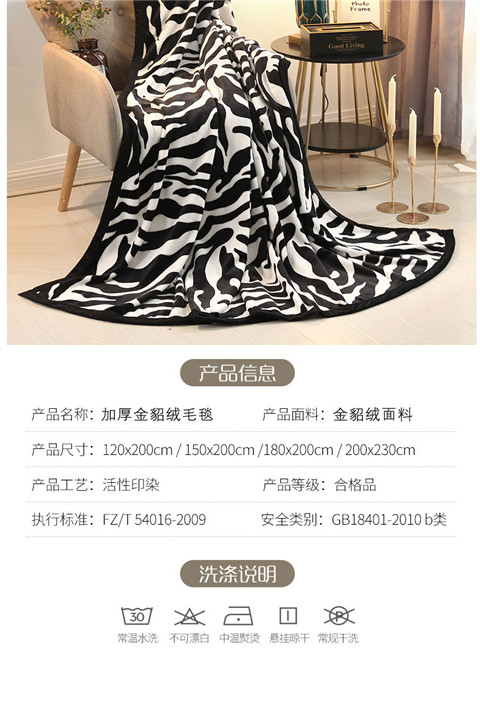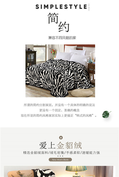商品名称:爱她美家纺 2022新款300g金貂绒毛毯 斑马纹