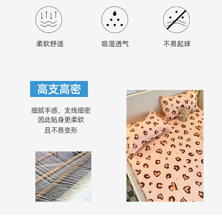 宏源家纺 2022新款亲肤棉芦荟棉单床笠 爱心豹纹