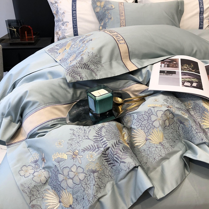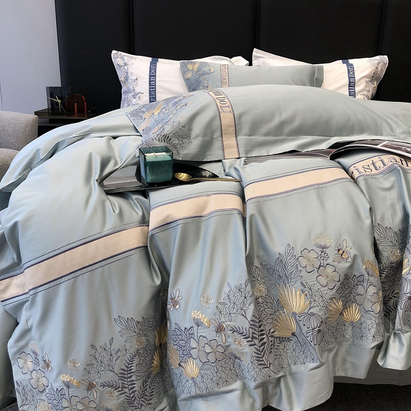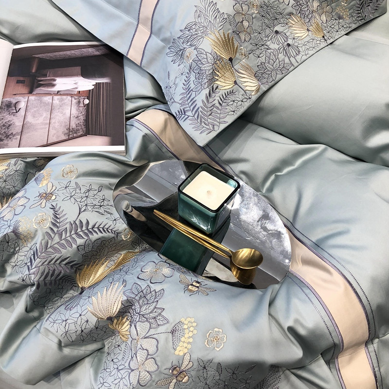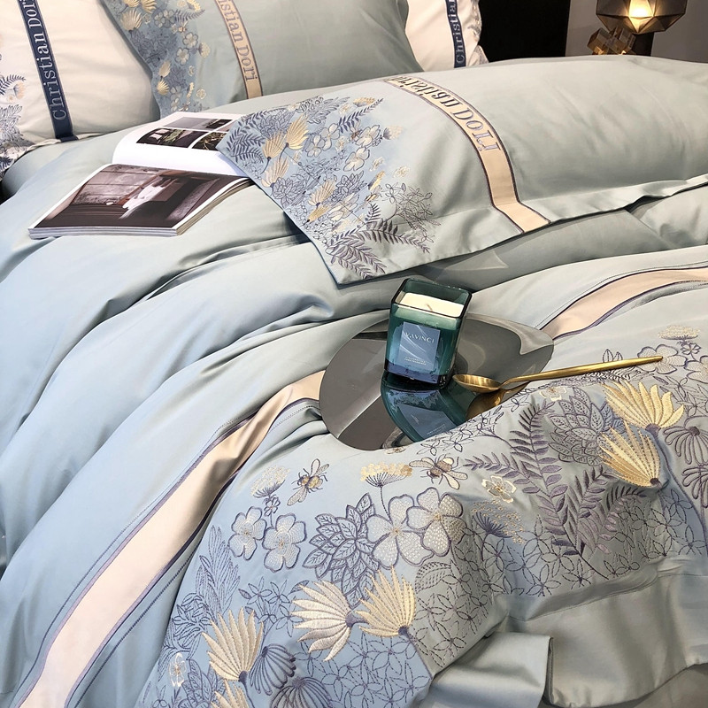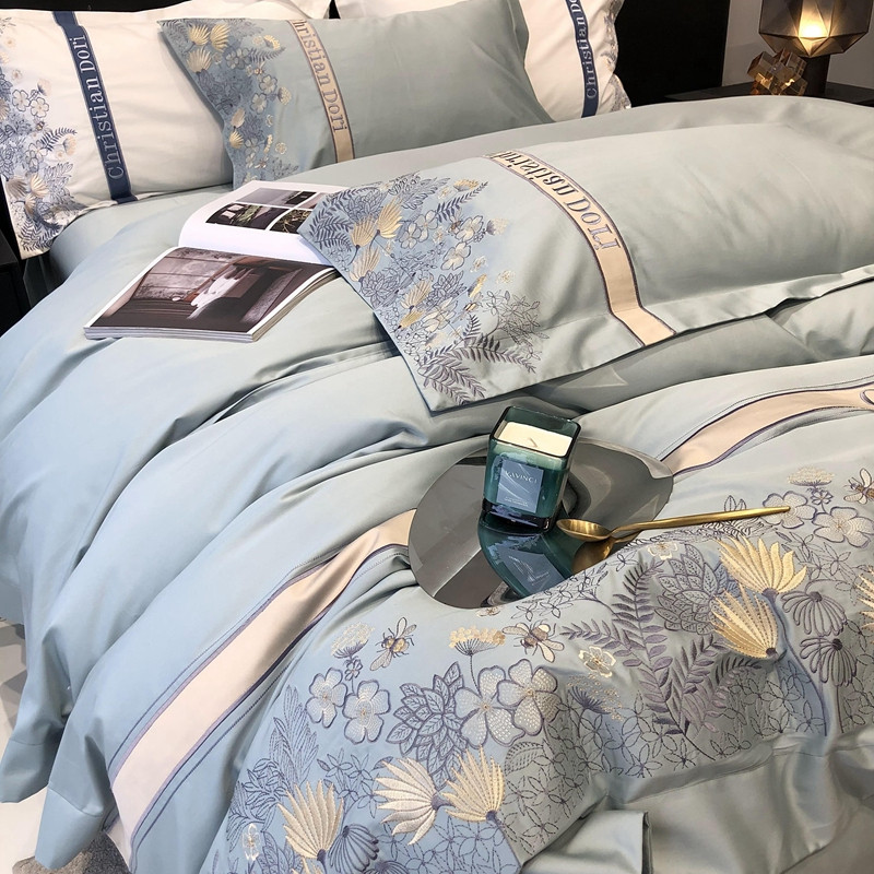 太古汇 2022新款全棉刺绣四件套—铃兰系列 铃兰-淡蓝