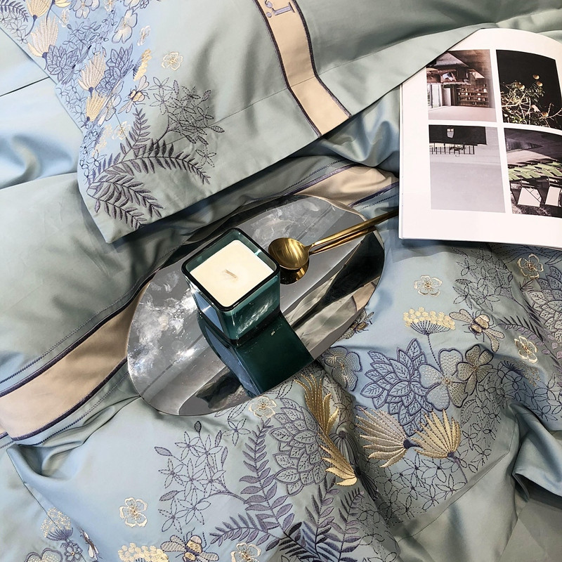 商品名称:太古汇 2022新款全棉刺绣四件套—铃兰系列 铃兰-淡蓝