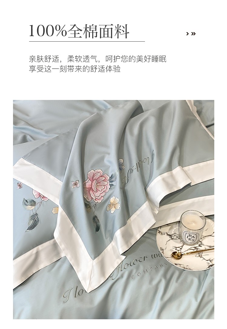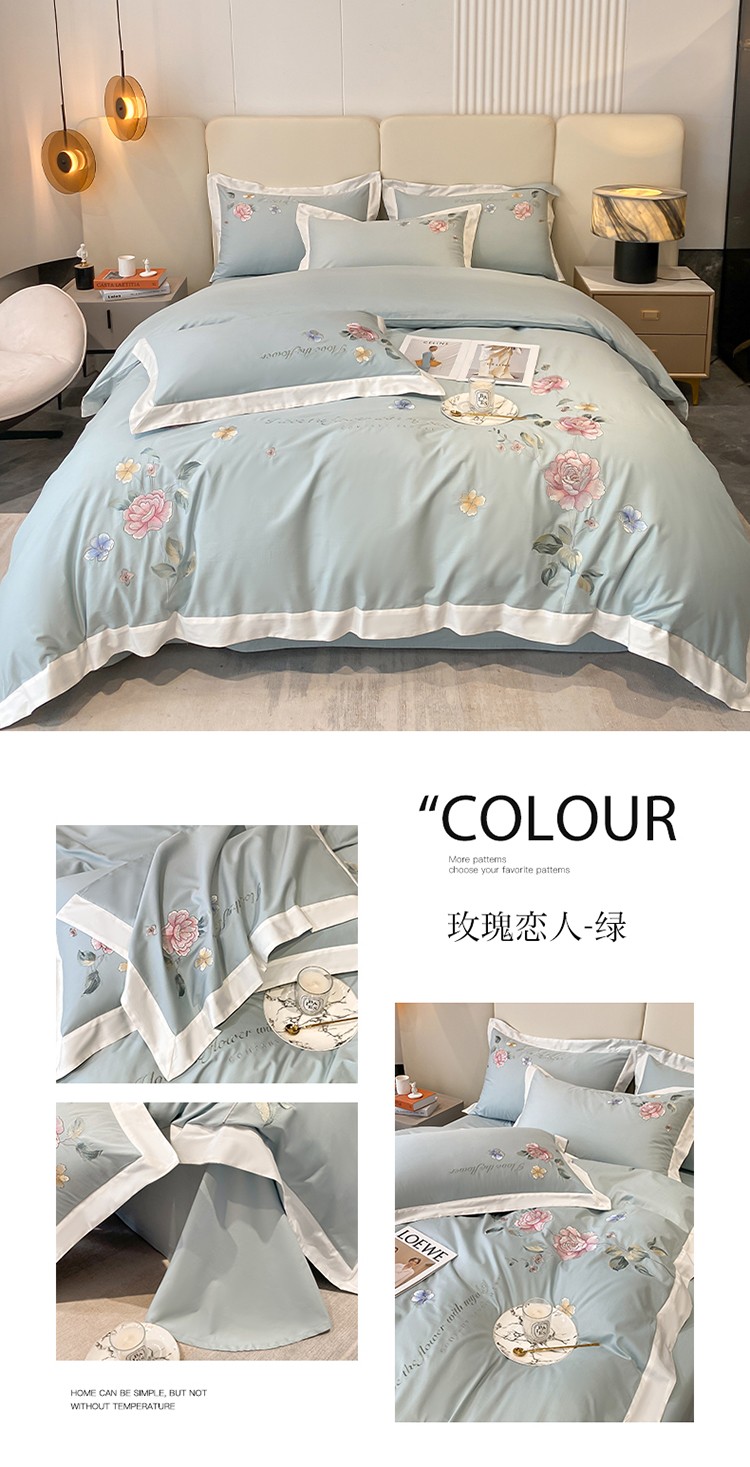 理想家 2022新款13372全棉刺绣四件套 玫瑰恋人-绿色