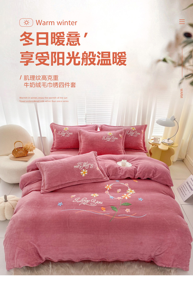 商品名称:云锦22新肌理纹高克重200克牛奶绒毛巾绣四件套一帘幽梦豆沙
