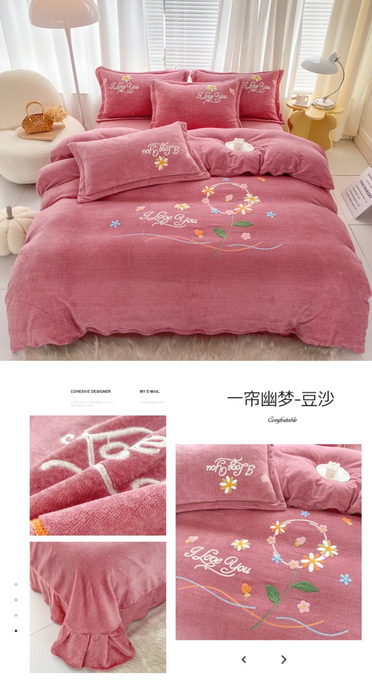 (总)云锦2023秋冬新品全棉磨毛绣花四件套缦芯,缦芯粉,缦芯灰,缦芯橘,缦芯蓝,缦芯紫