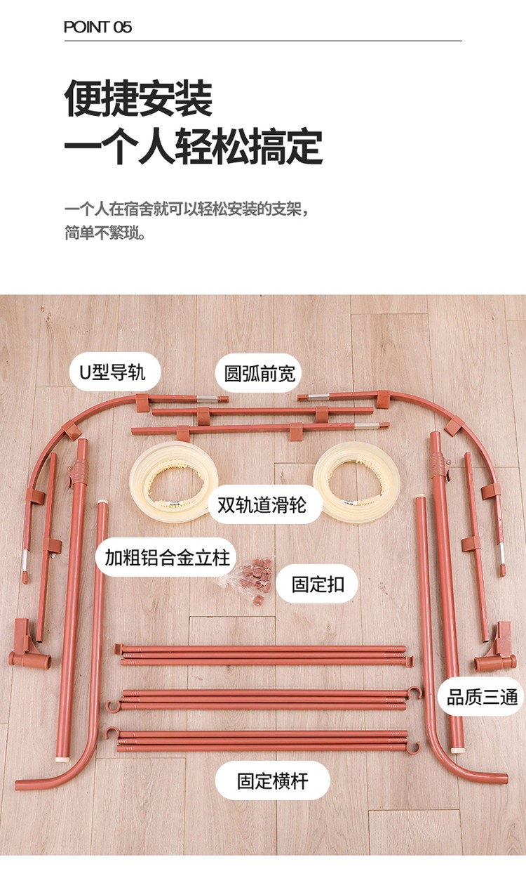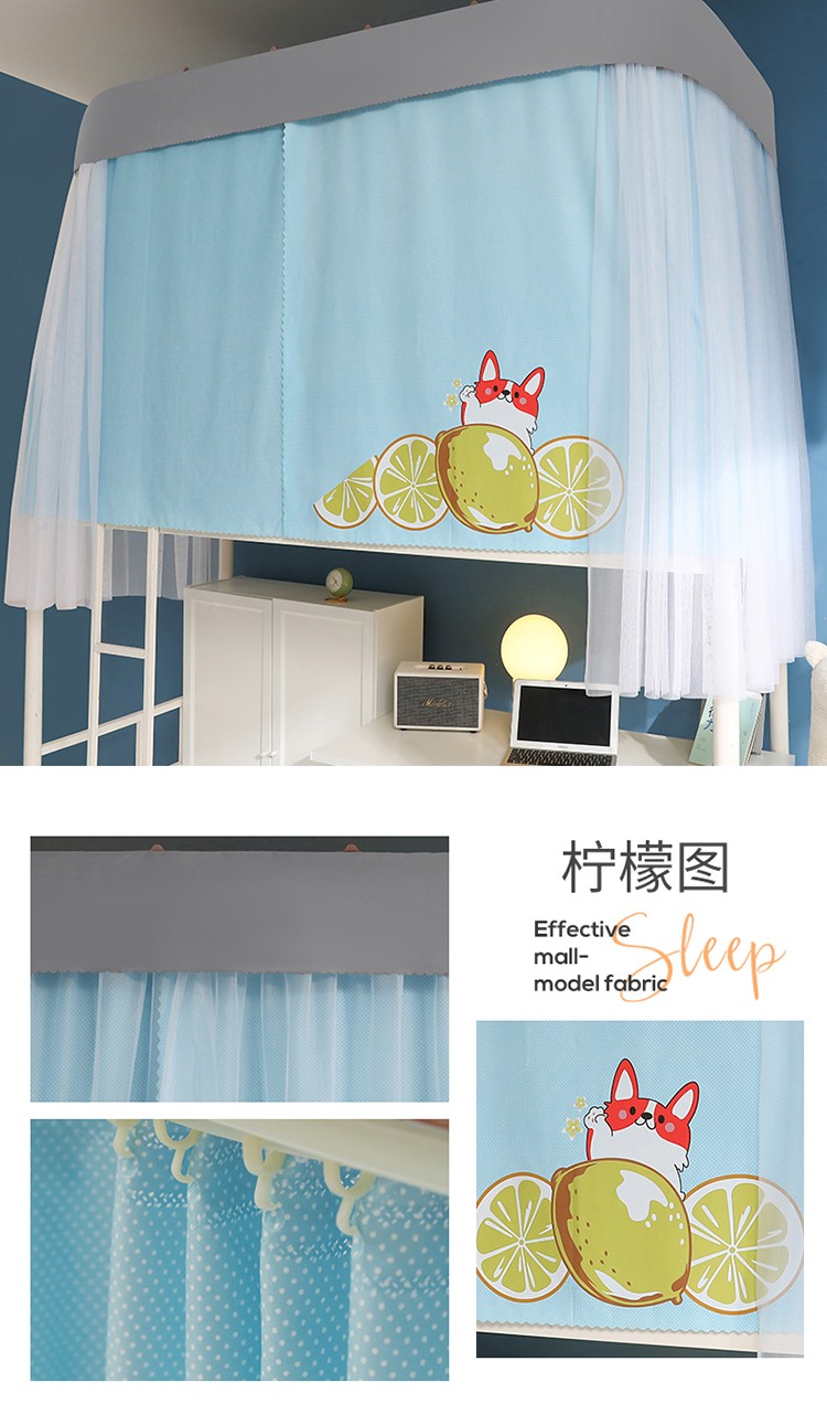 商品名称:新款U型双轨道双皮条伸缩床帘学蚊帐XD-11 柠檬图-送风扇杆