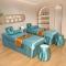 莉人坊美容床罩批发 2023绸缎角花美容床罩四件套 角花浅蓝