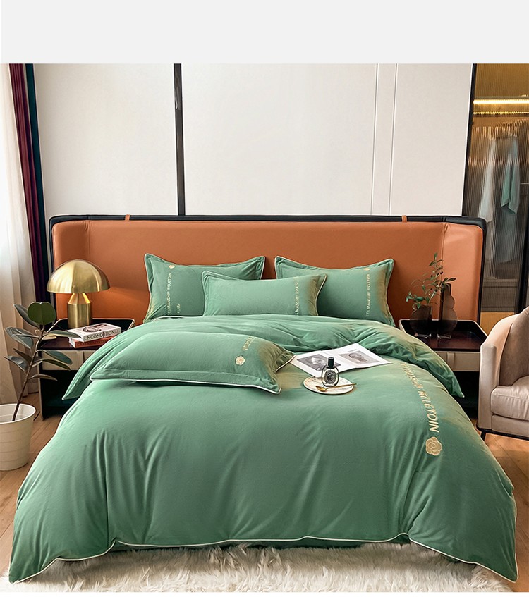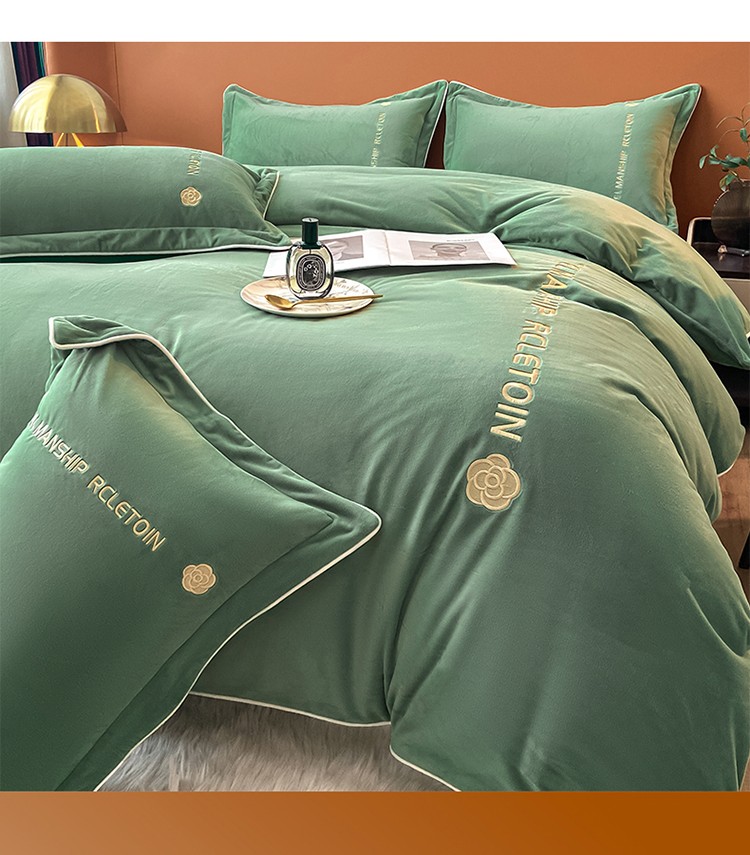 嗯呢 2023新款A类高克重轻奢刺绣婴儿绒四件套 抹茶绿