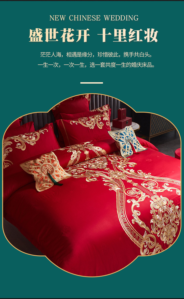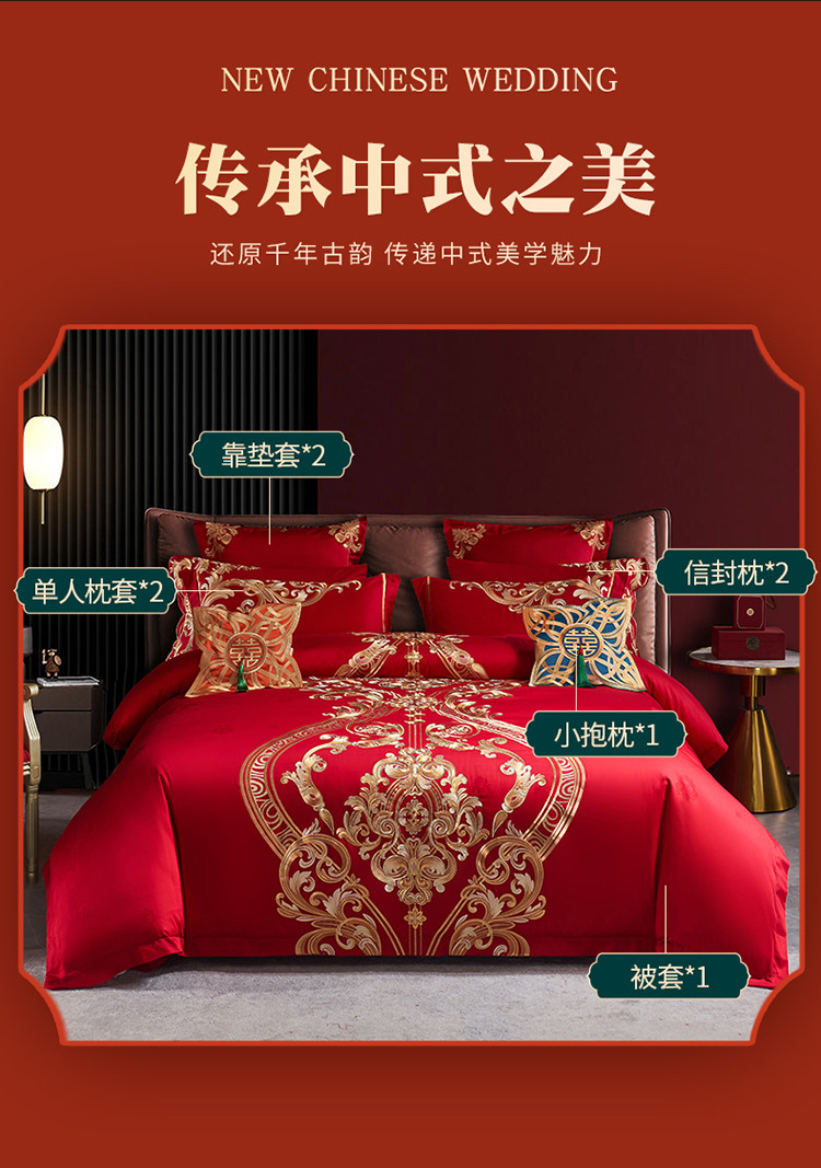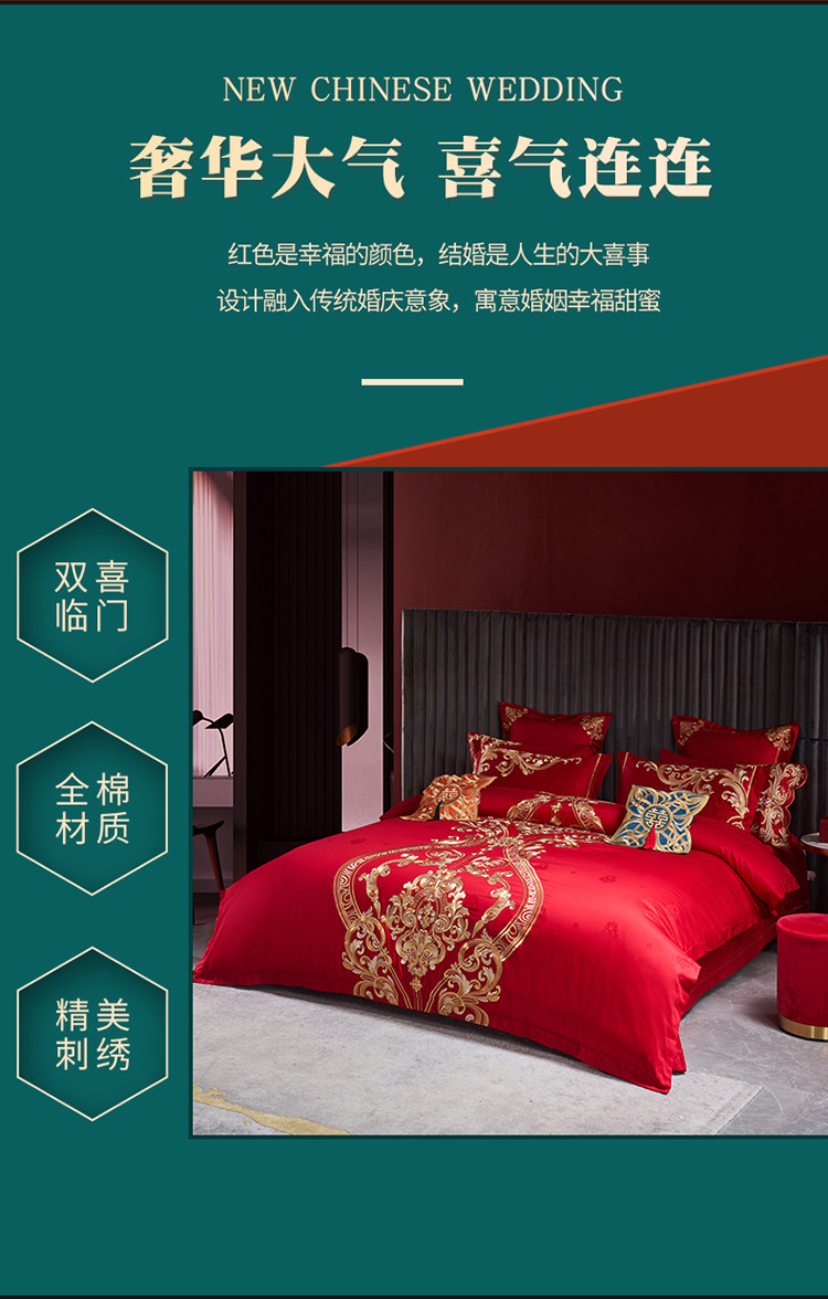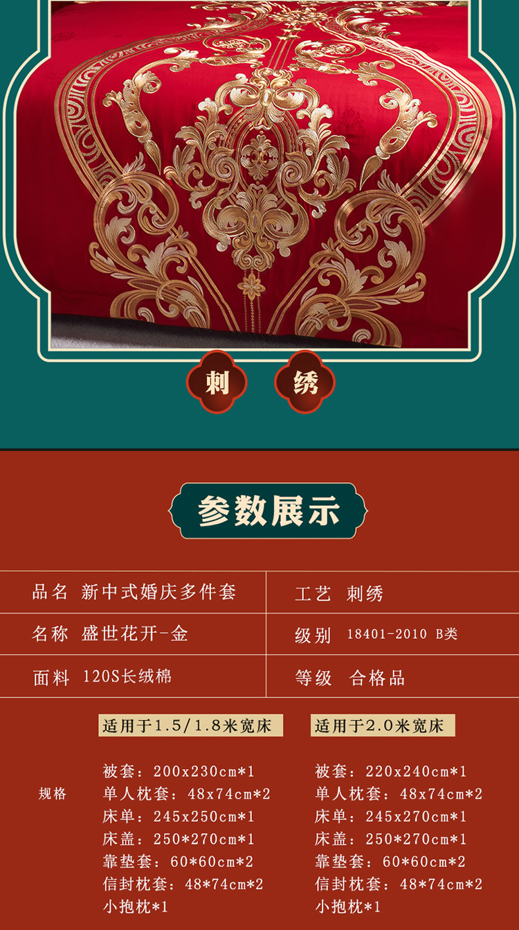 当前位置: 91家纺网 > 商品网购 > 床品套件 > 多件套 > 多件套 > 红番天新款全棉提花贡缎澳棉提花中式精美苏绣多件套盛世花开-金