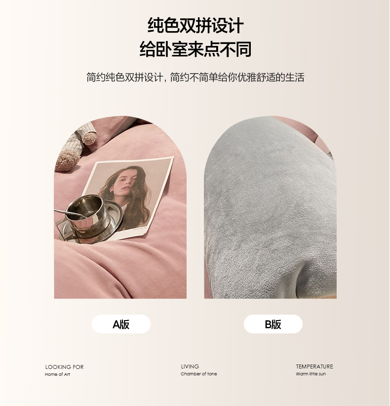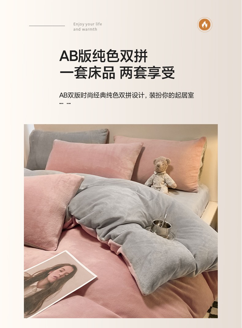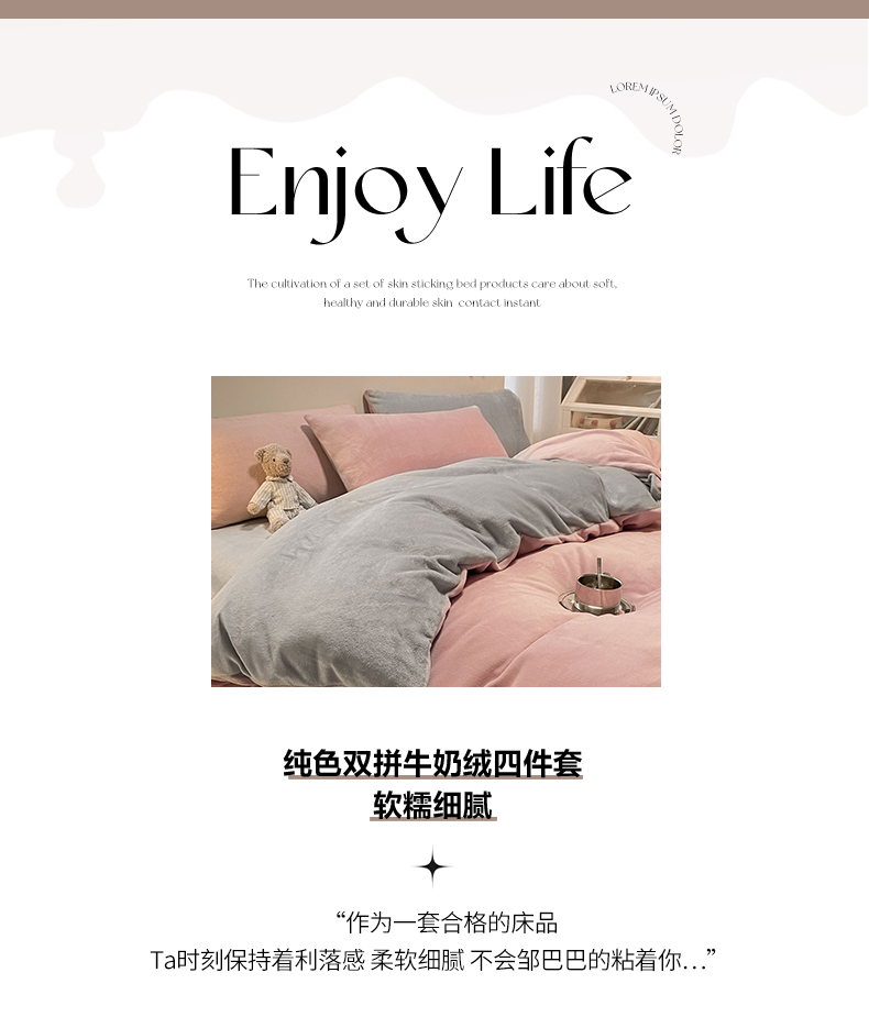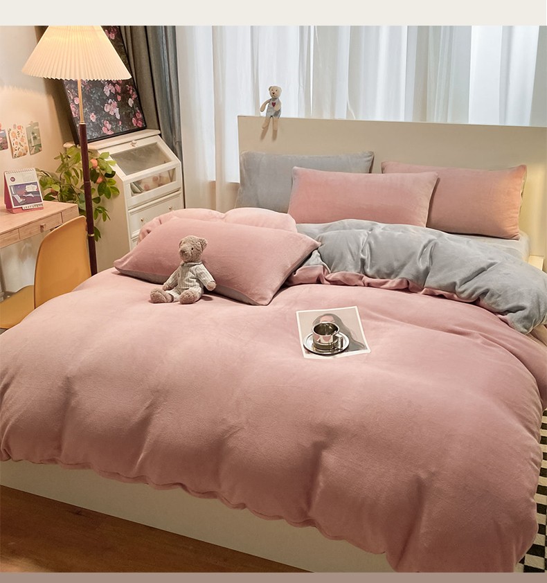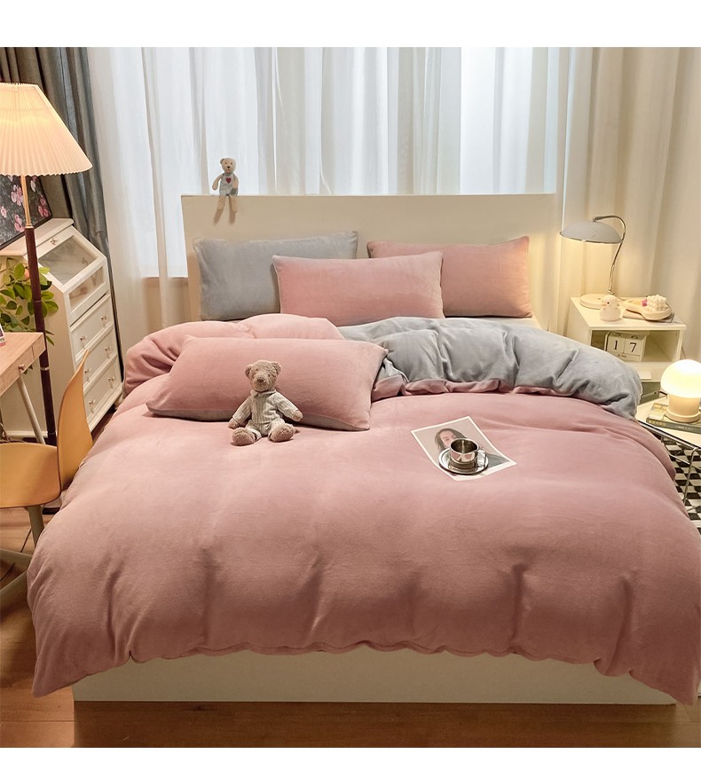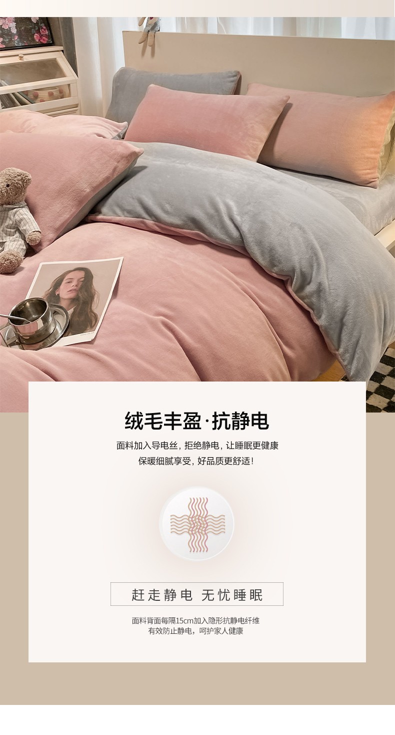 当前位置: 91家纺网 > 商品网购 > 床品套件 > 四件套 > 牛奶绒四件套 > 古吉梦 2022纯色双拼牛奶绒四件套 双拼牛奶绒-藕粉+浅灰