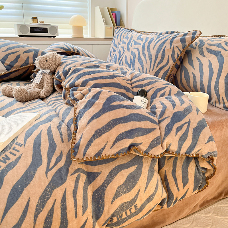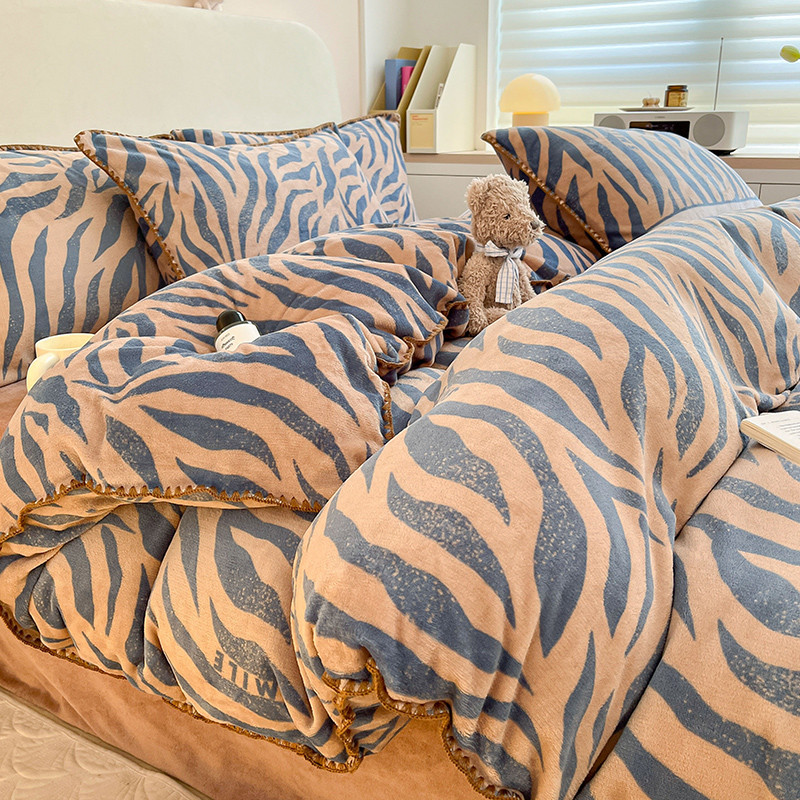 当前位置: 91家纺网 > 商品网购 > 床品套件 > 四件套 > 牛奶绒四件套 > 安哆啦 新款贝壳边工艺牛奶绒珊瑚绒四件套单被套 老虎纹