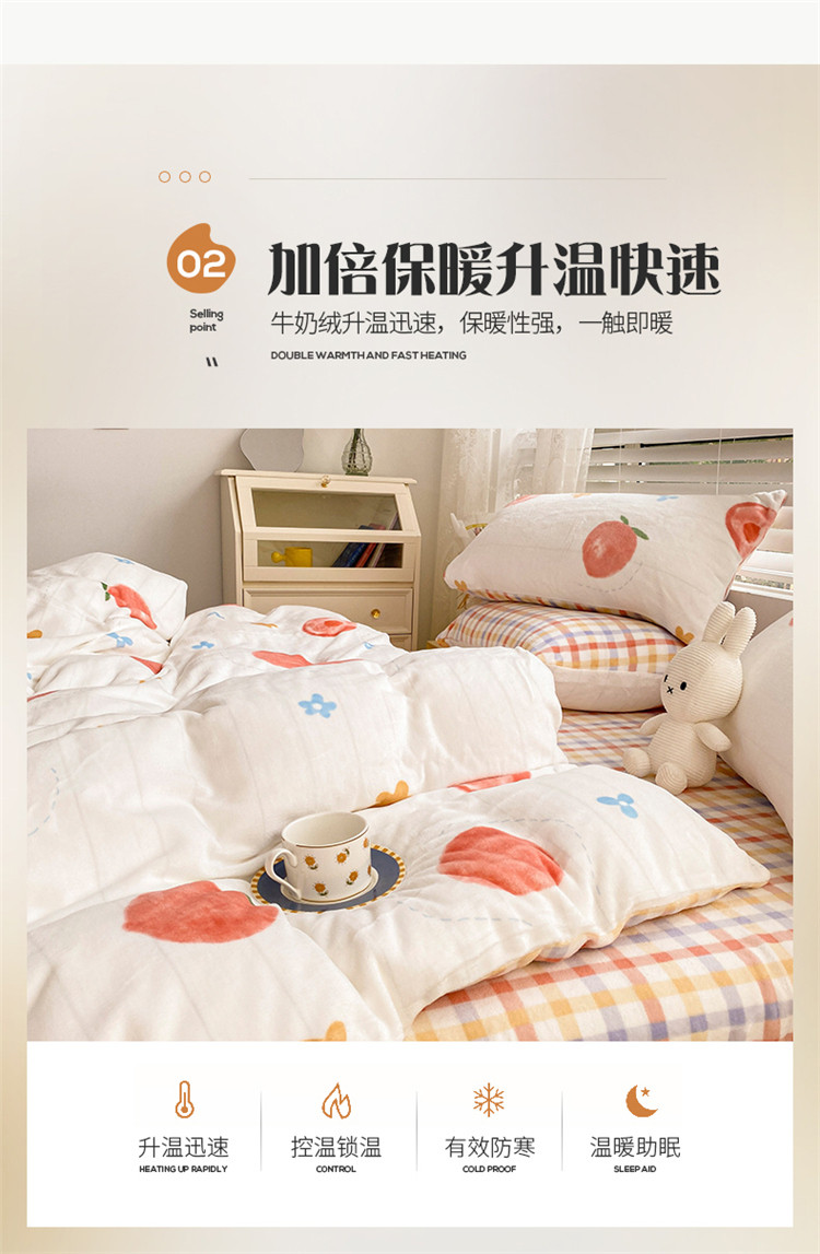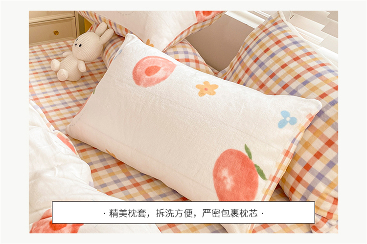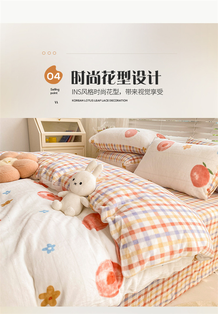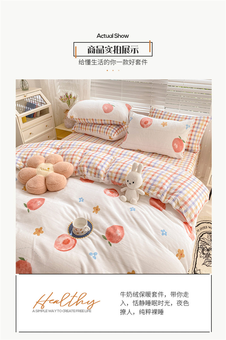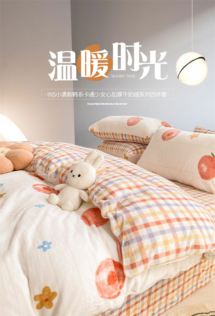 桃子家居 2022新款ins小清新韩系加厚牛奶绒系列四件套 绒-蜜桃朵朵2