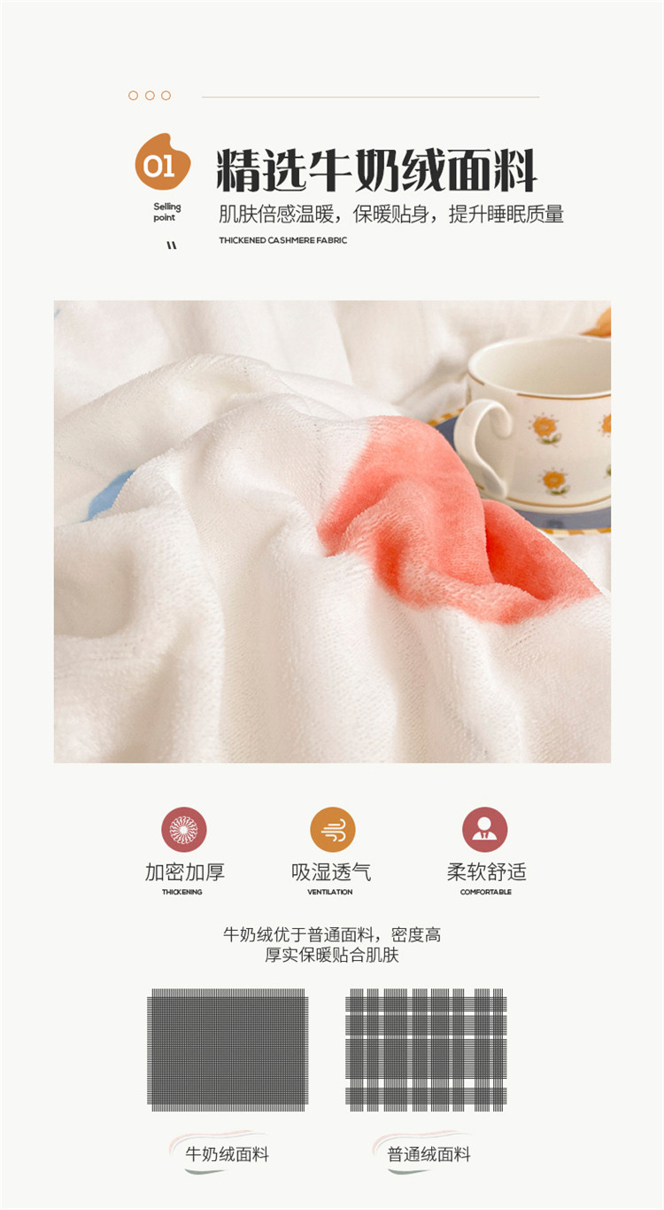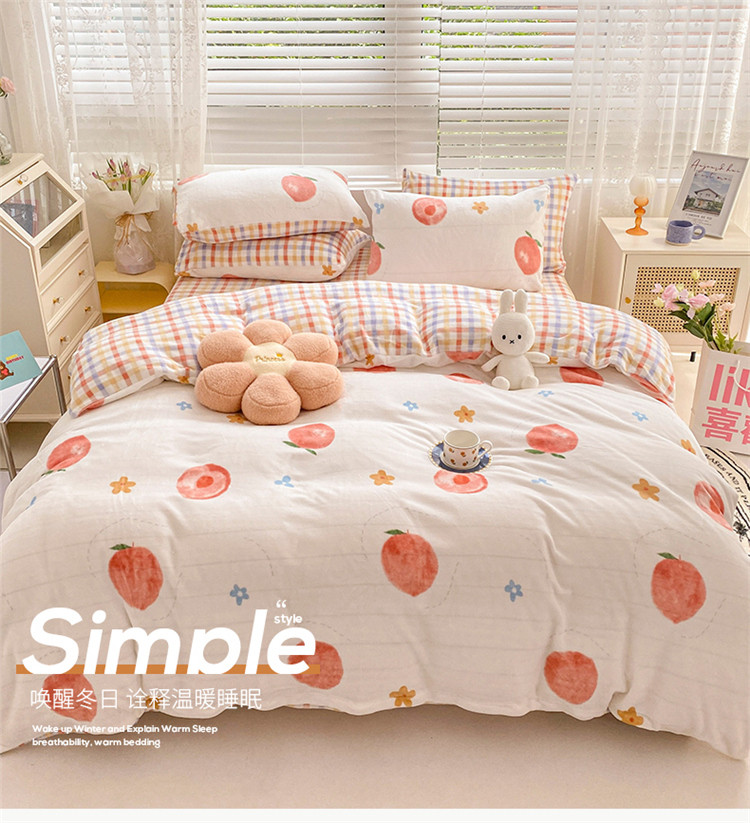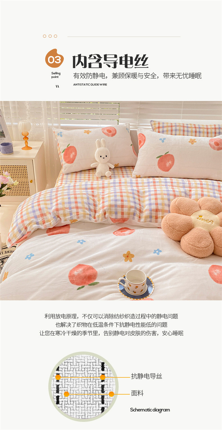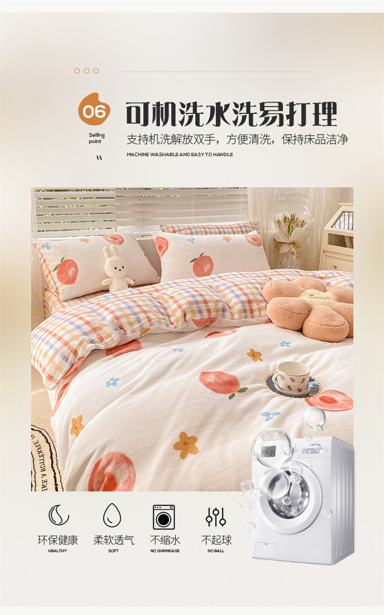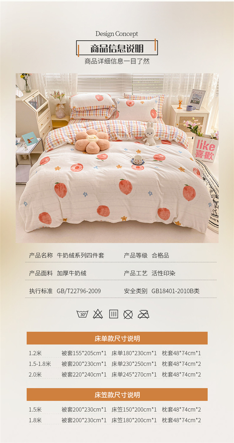 桃子家居 2022新款ins小清新韩系加厚牛奶绒系列四件套 绒-蜜桃朵朵2