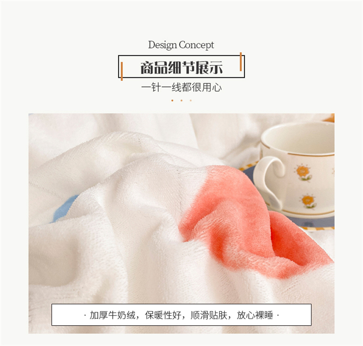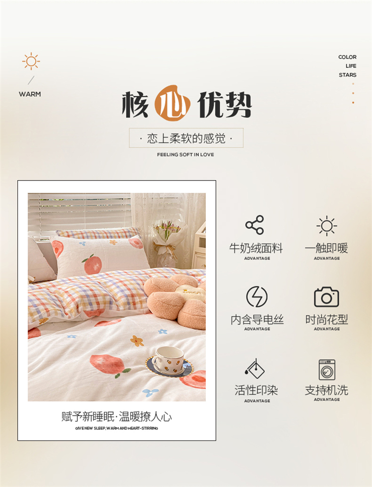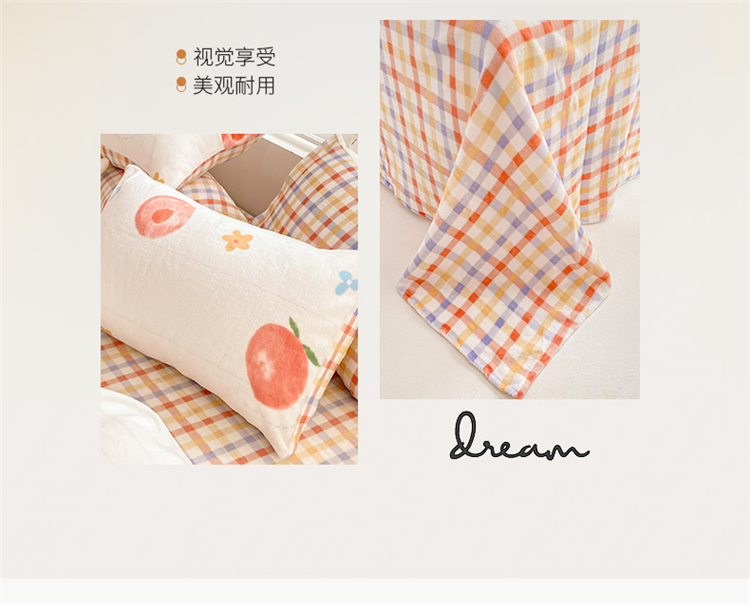 商品名称:桃子家居 2022新款ins小清新韩系加厚牛奶绒系列四件套 绒-蜜桃朵朵2