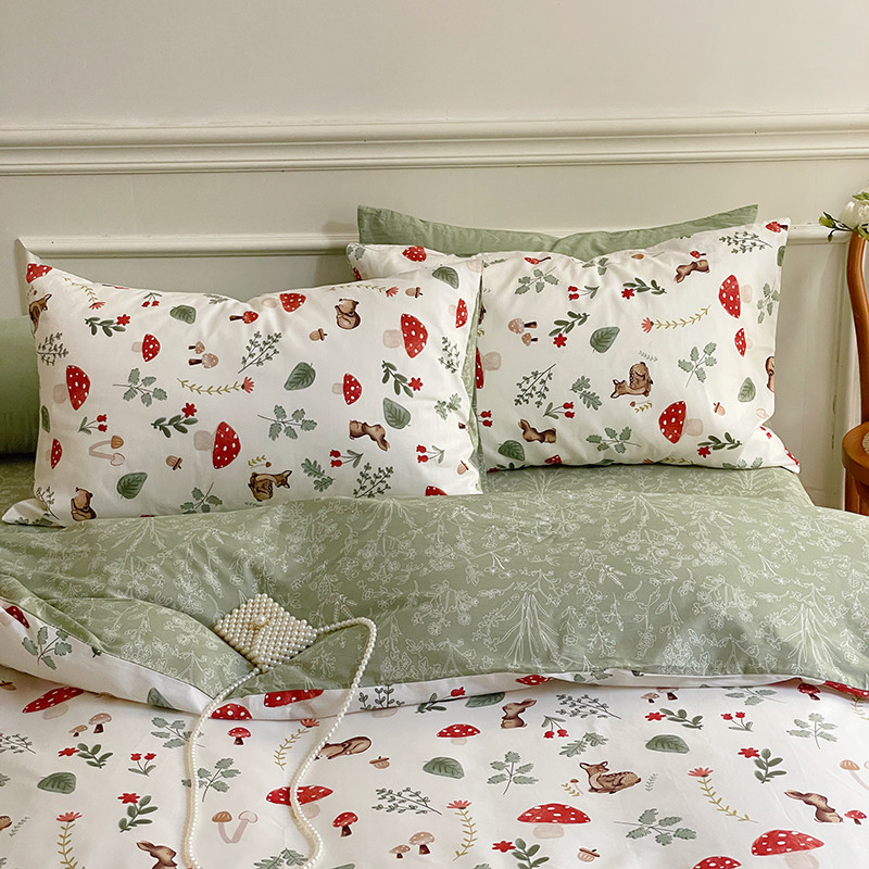 昔可家纺 2022新款仙女风全棉爱丽丝系列印花四件套 小鹿遇险记