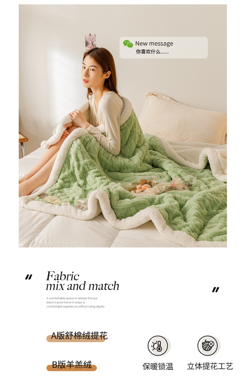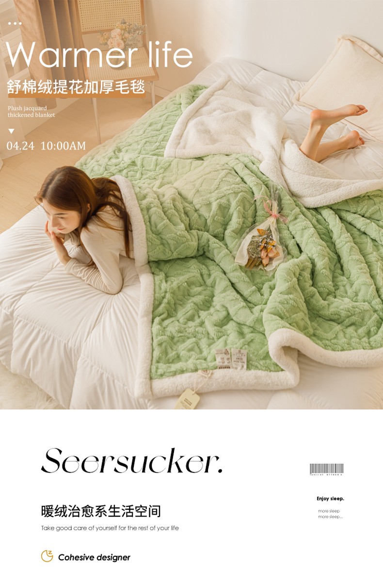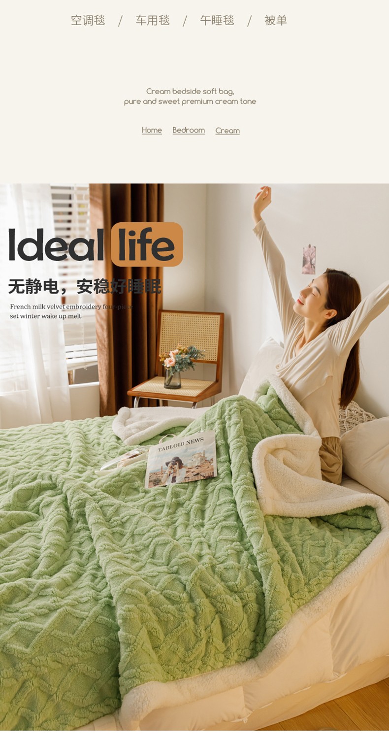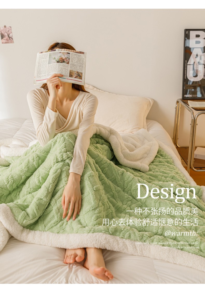 简爱-2026加厚舒棉绒羊羔绒盖毯毛毯 菱形茉格-抹茶绿