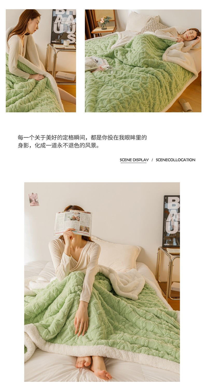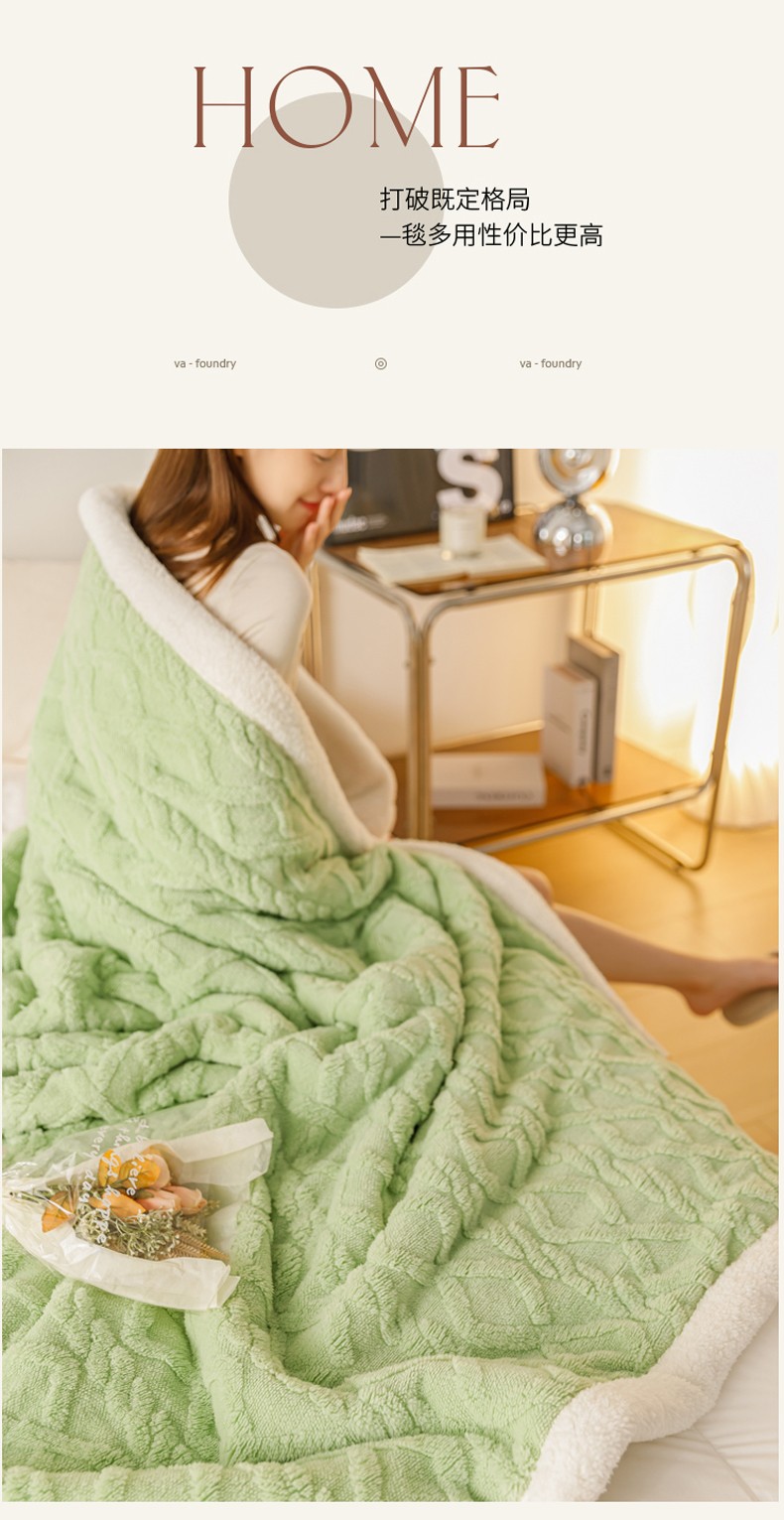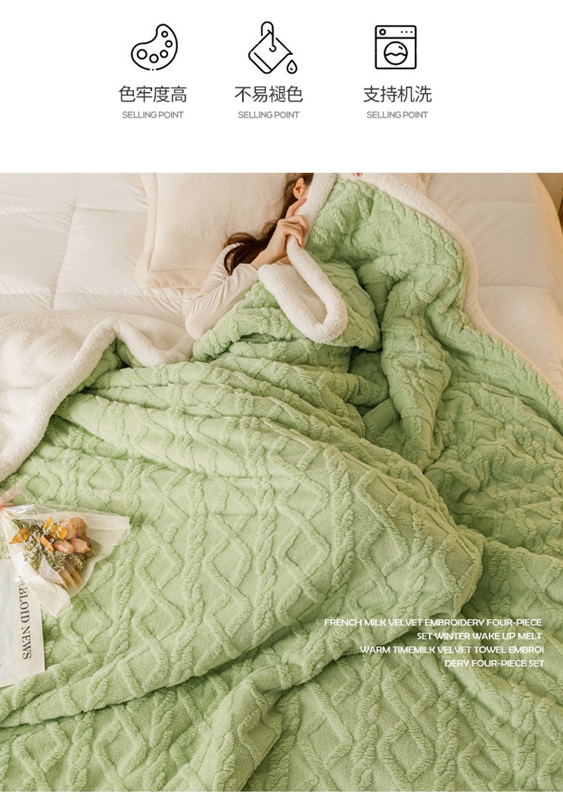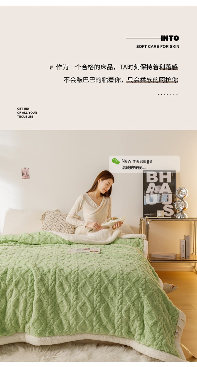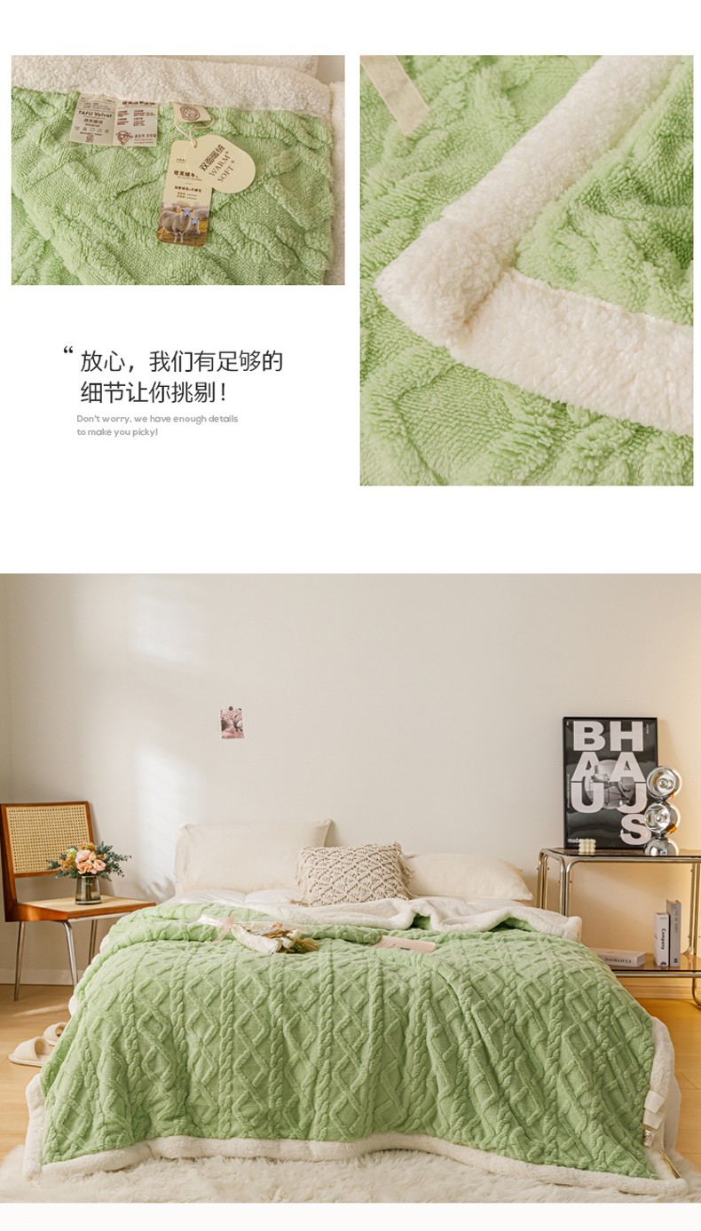 商品名称:简爱-2026加厚舒棉绒羊羔绒盖毯毛毯 菱形茉格-抹茶绿