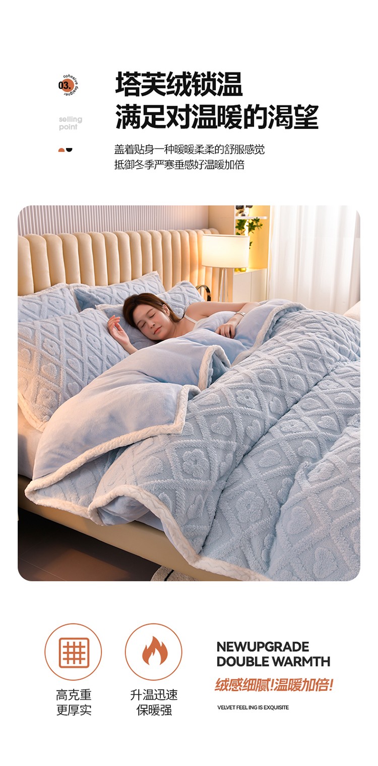 澳梵 新款塔芙绒牛奶绒包边四件套-柔情慢漫 花意-婴儿蓝