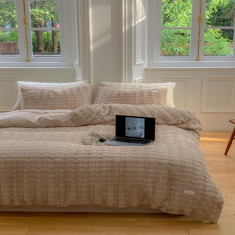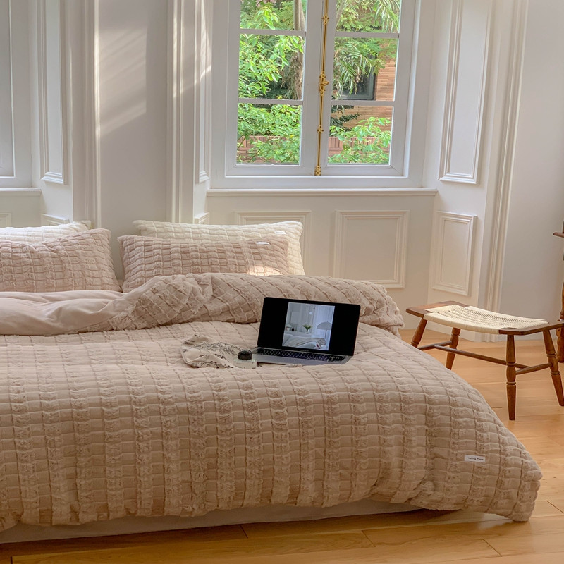洋铭区 2022新款獭兔绒四件套 獭兔绒-米驼色