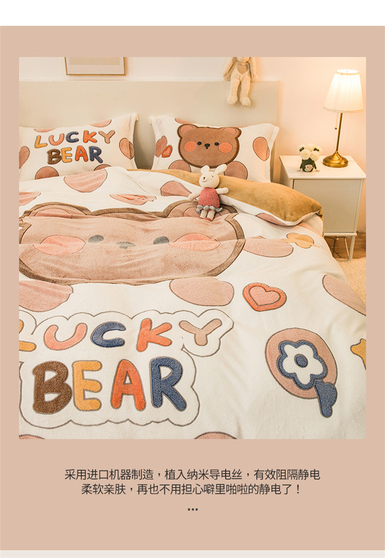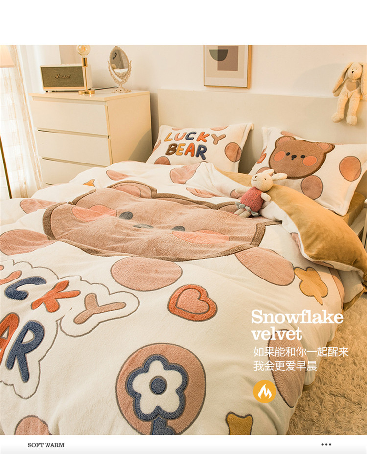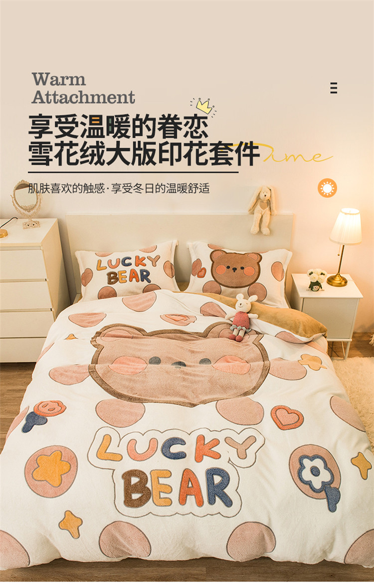 商品名称:懒猫 2022新品大版雪花绒活性印花四件套 贝尔熊