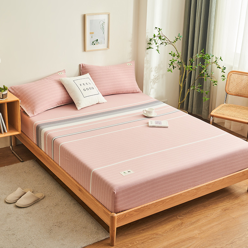 • 91家纺网 家纺一手货源 找家纺 21度C 2023新款A类全棉色织水洗棉单品床笠 豆寇粉