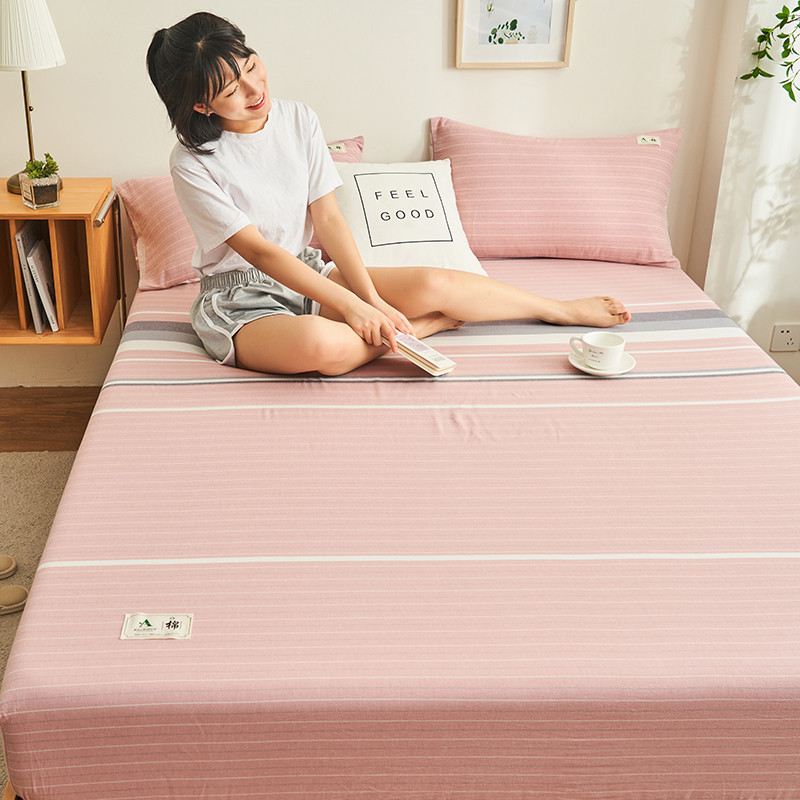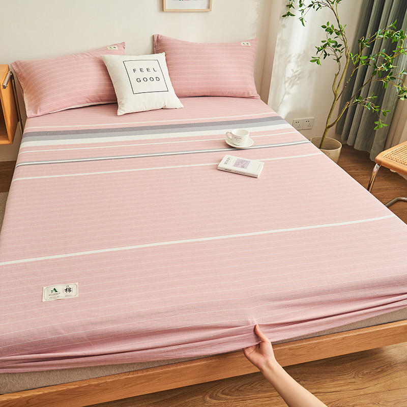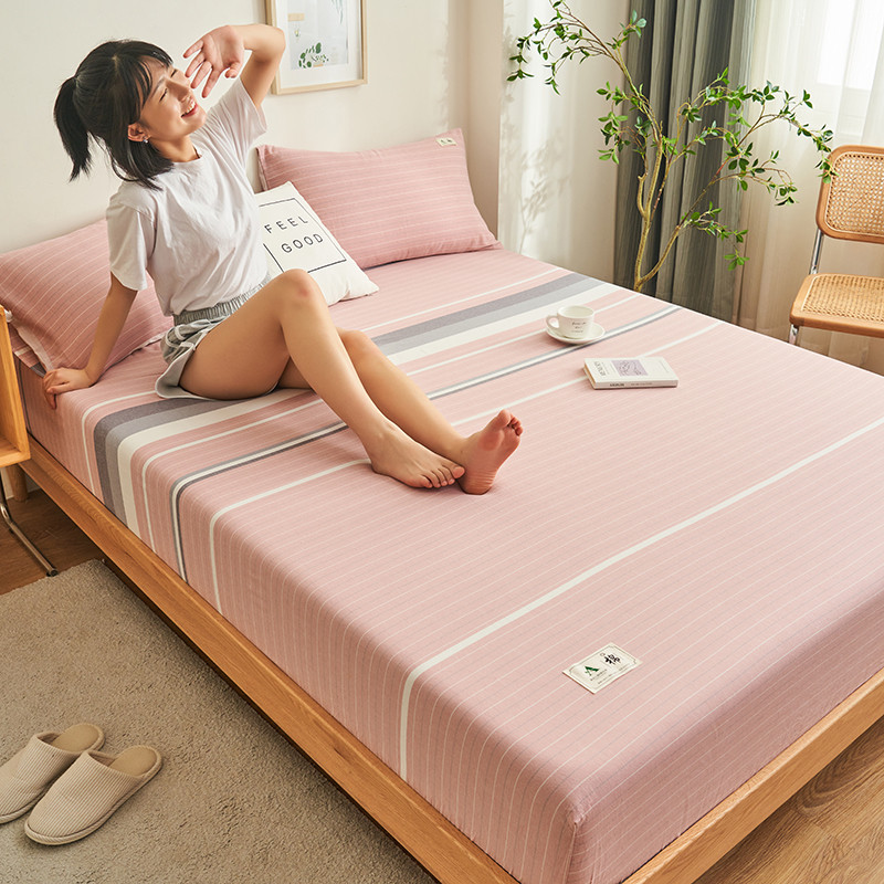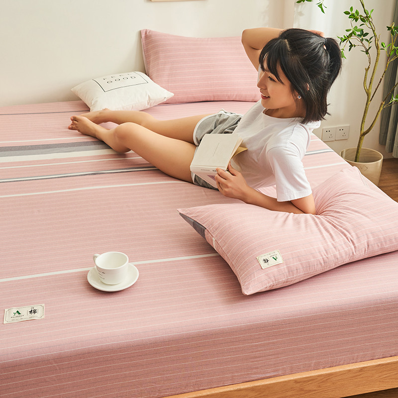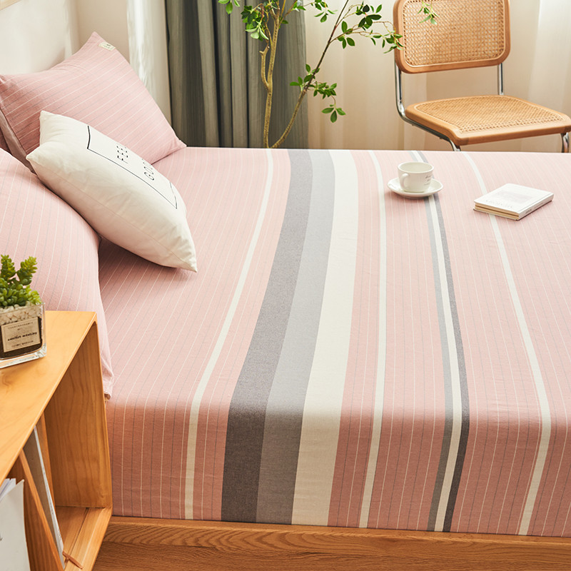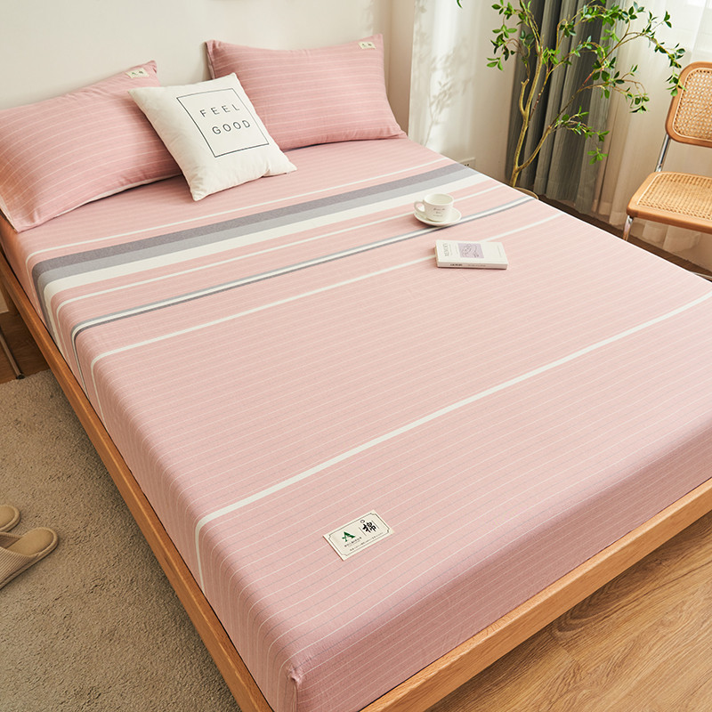 21度C 2023新款A类全棉色织水洗棉单品床笠 豆寇粉