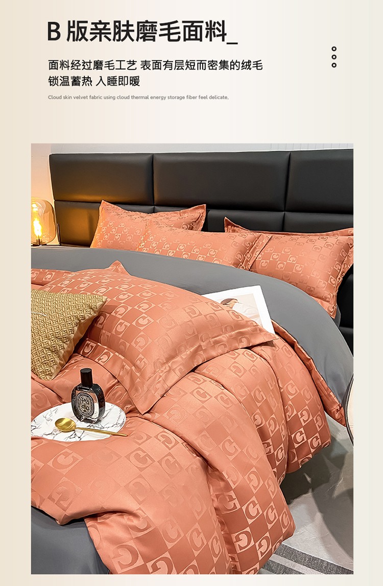 (总)遇见家居生活馆 2025新款A类牛奶绒雕花四件套-羽飞舞,卡诺粉+香槟,奶芋色+经典灰,奶芋色+杏仁,香草灰+经典灰,婴儿蓝+星辰灰