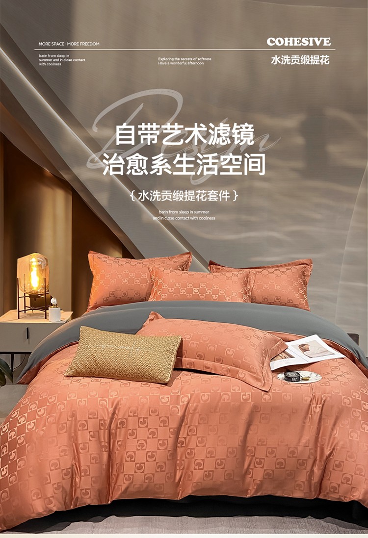 遇见家居生活馆 2023新款水洗贡缎提花四件套 柏林-焦糖