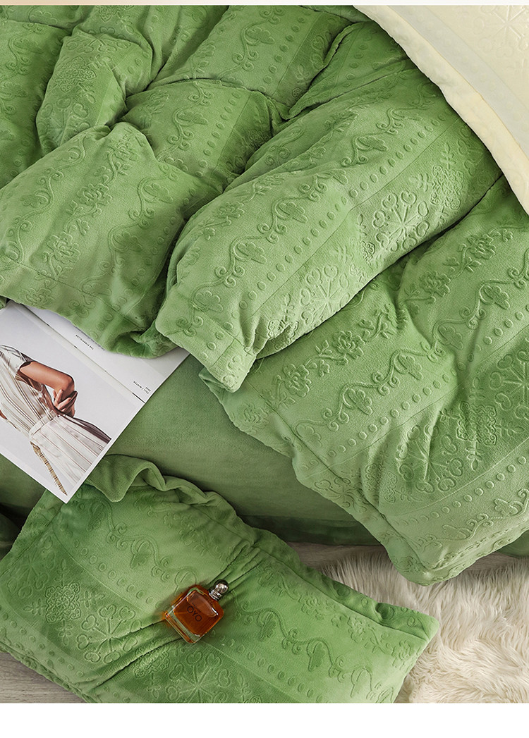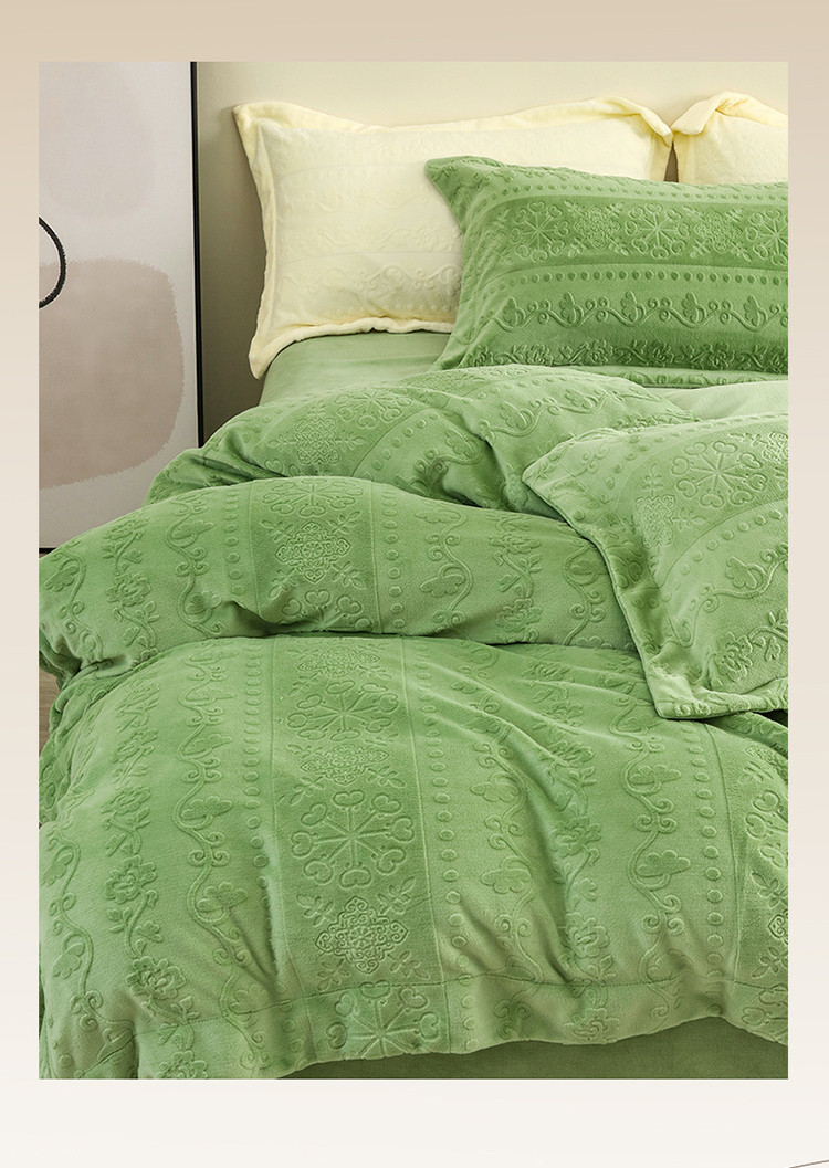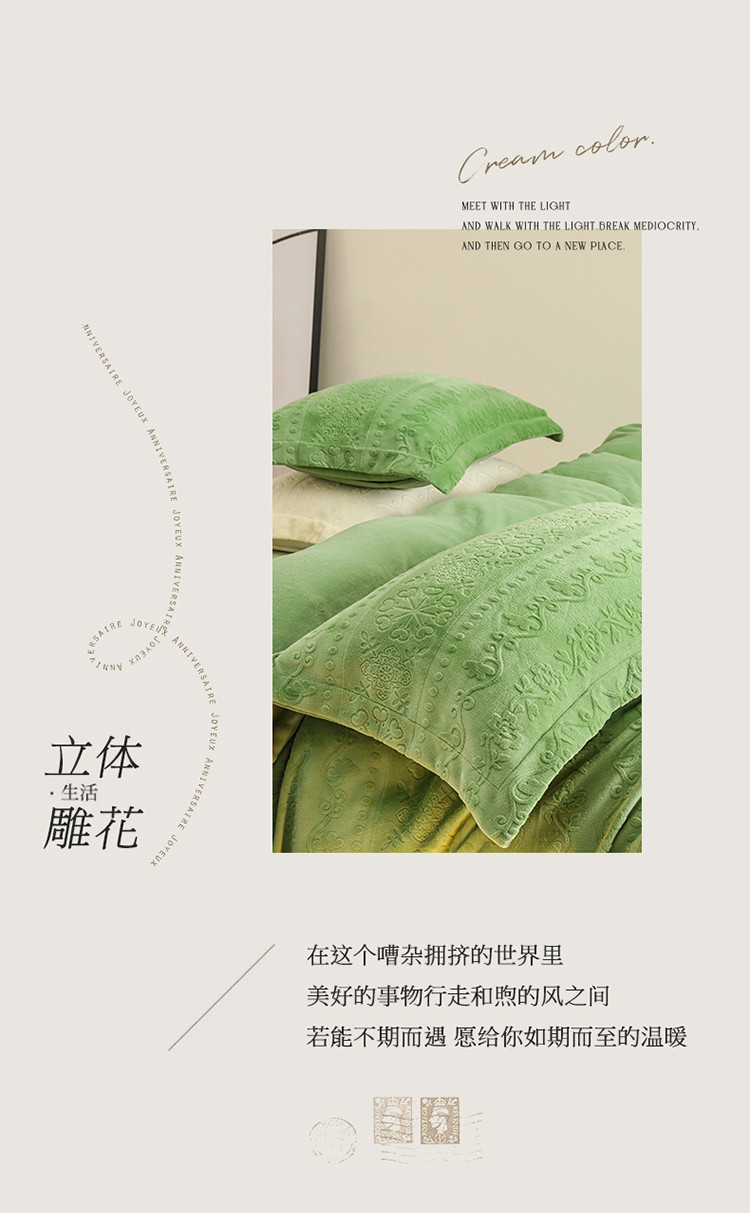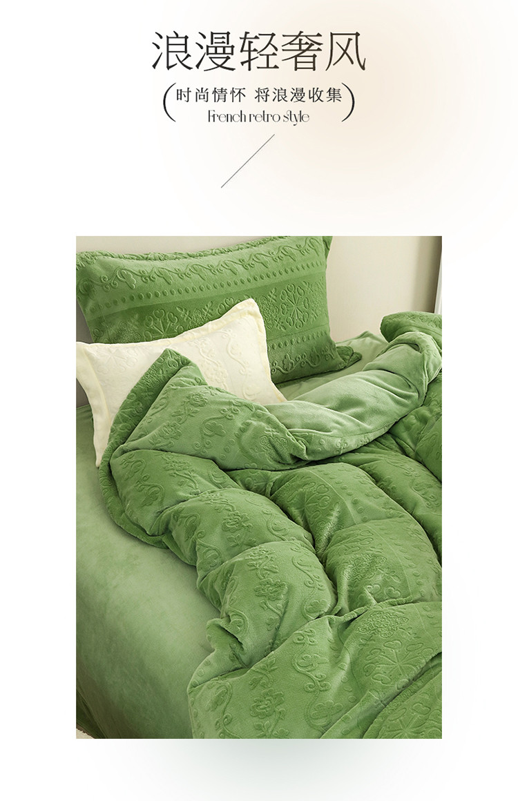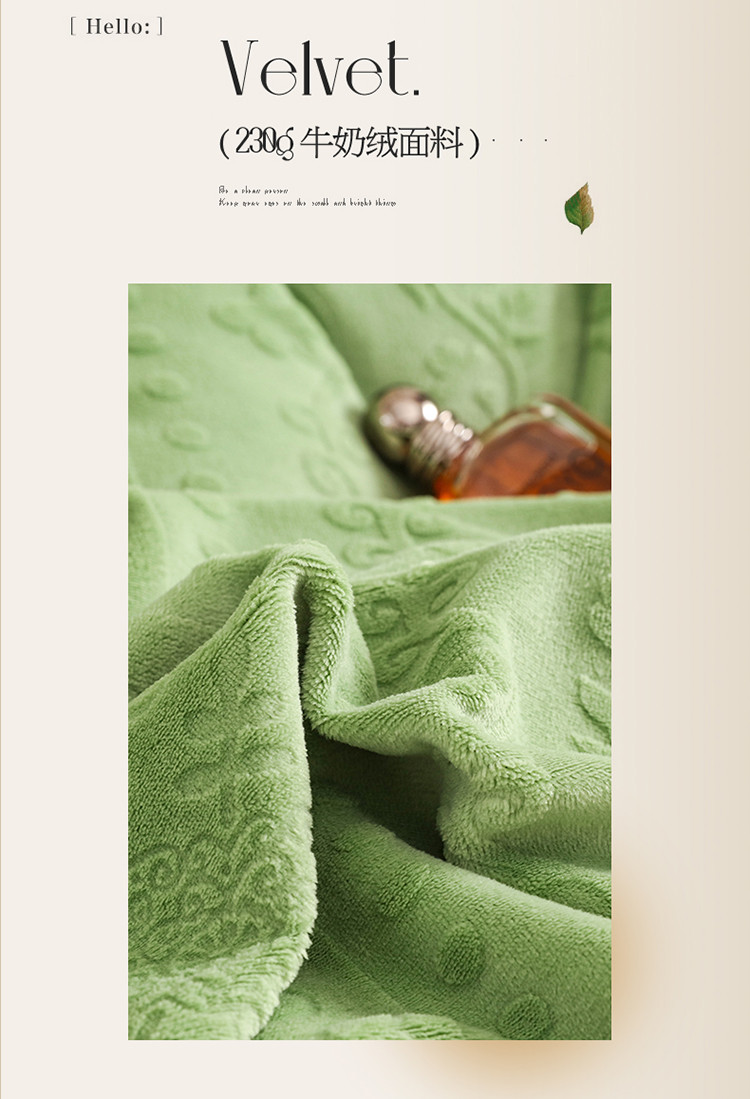 名品优仓 2022新款辛西娅系列230g牛奶绒雕花四件套 辛西娅-嫩芽绿