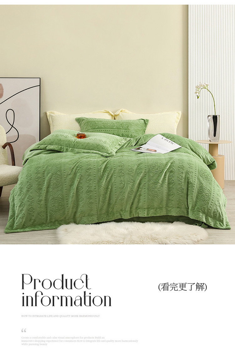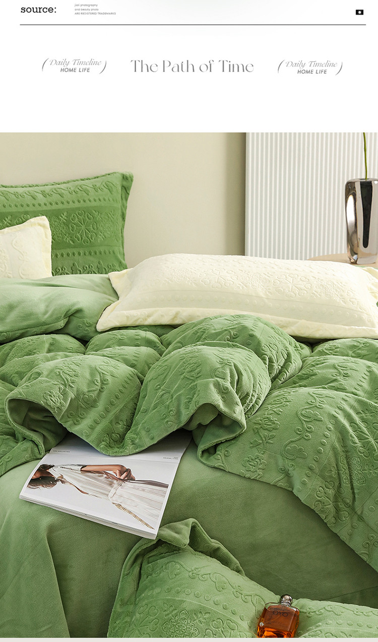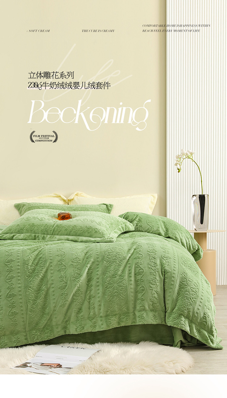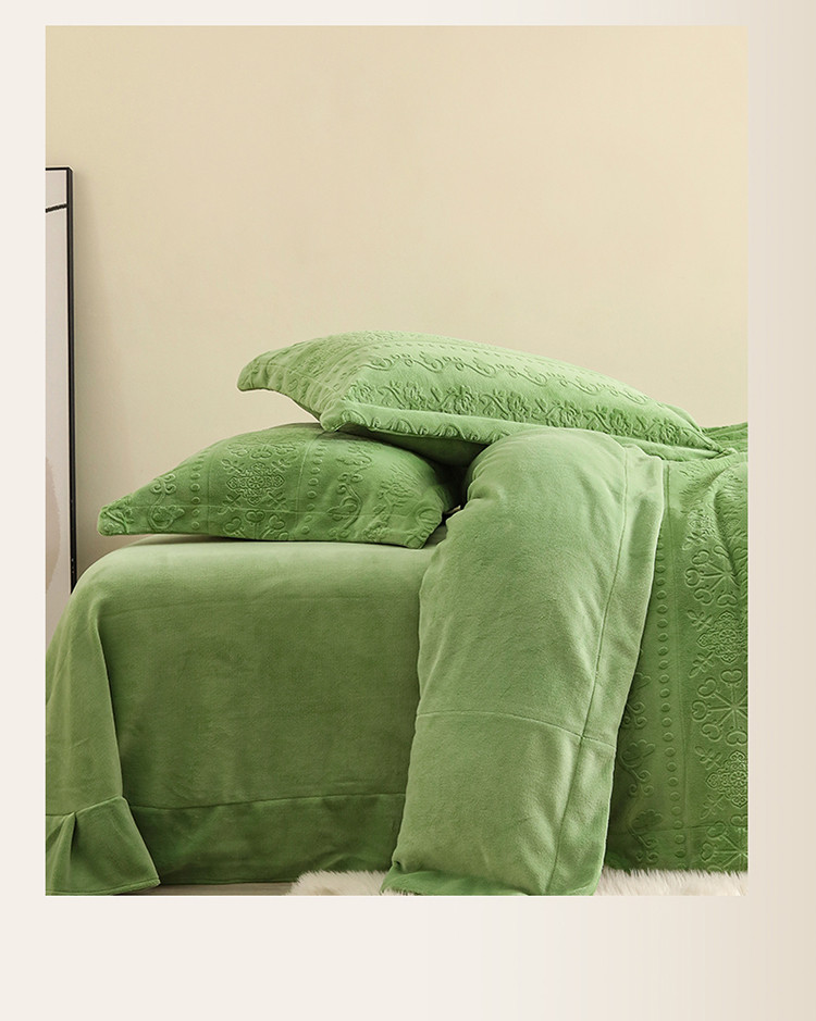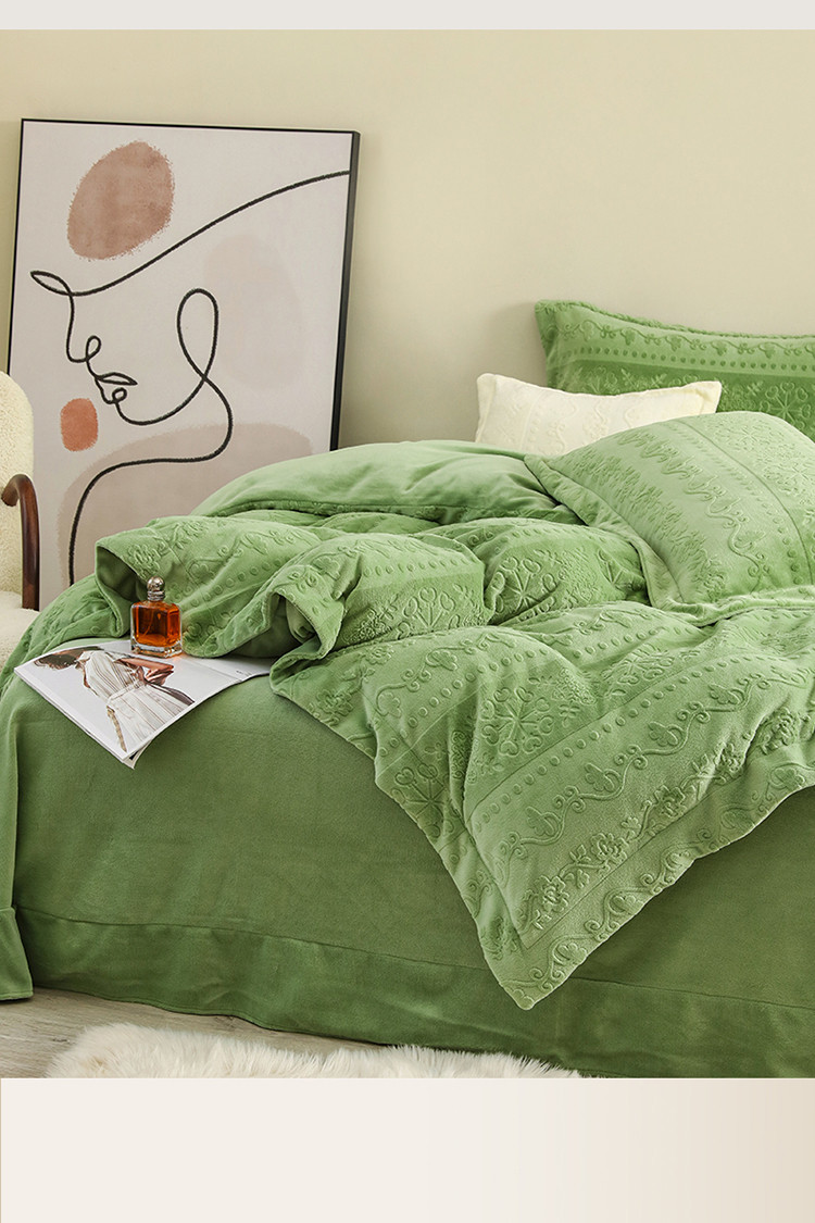 名品优仓 2022新款辛西娅系列230g牛奶绒雕花四件套 辛西娅-嫩芽绿
