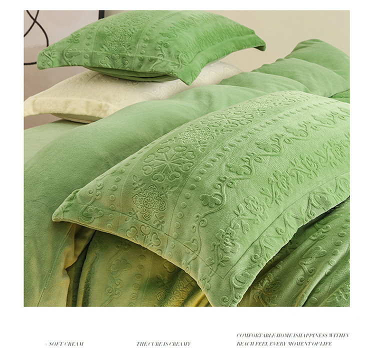 商品名称:名品优仓 2022新款辛西娅系列230g牛奶绒雕花四件套 辛西娅-嫩芽绿