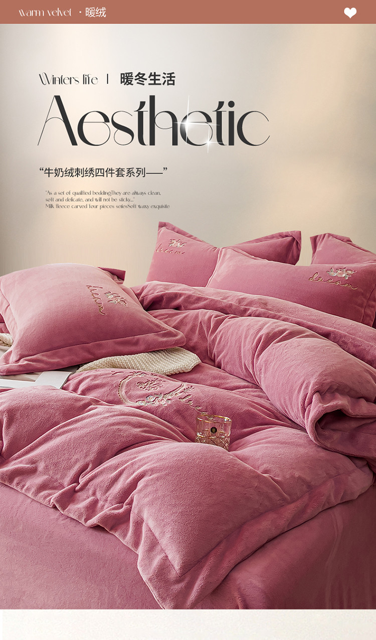 (总)名品优仓 2025新款220克牛奶绒绣花四件套-珊瑚,珊瑚-宝石蓝,珊瑚-粉色,珊瑚-姜黄,珊瑚-米杏,珊瑚-沫粉,珊瑚-杏粉