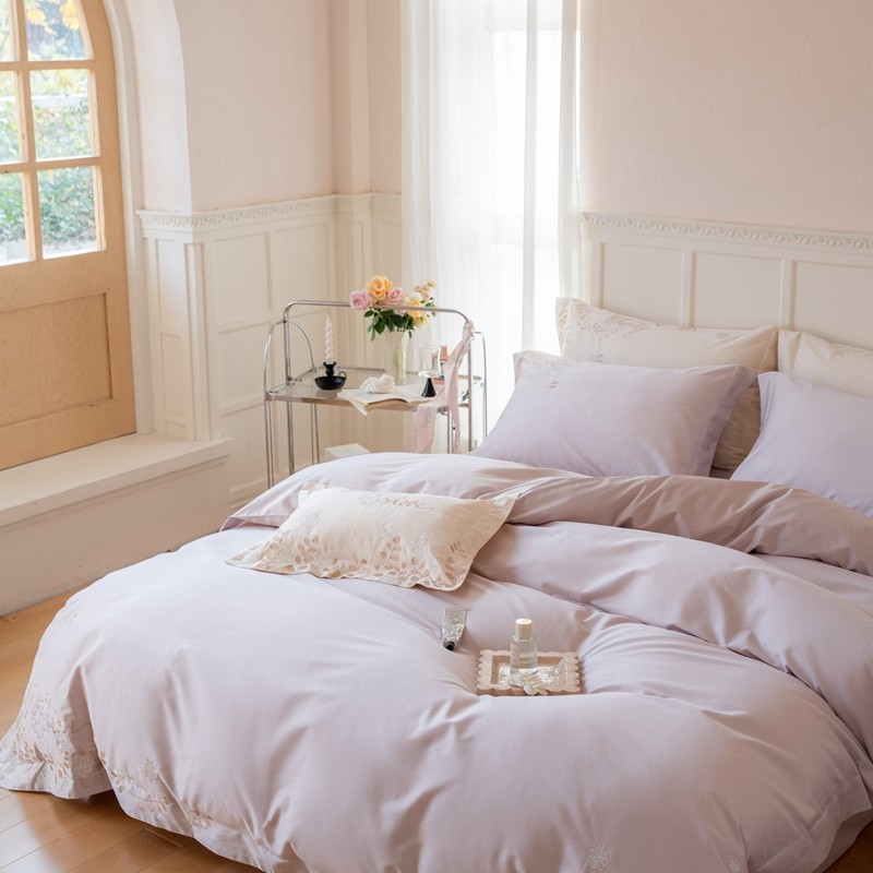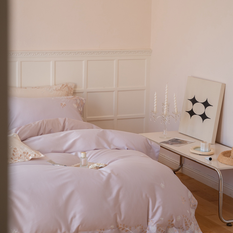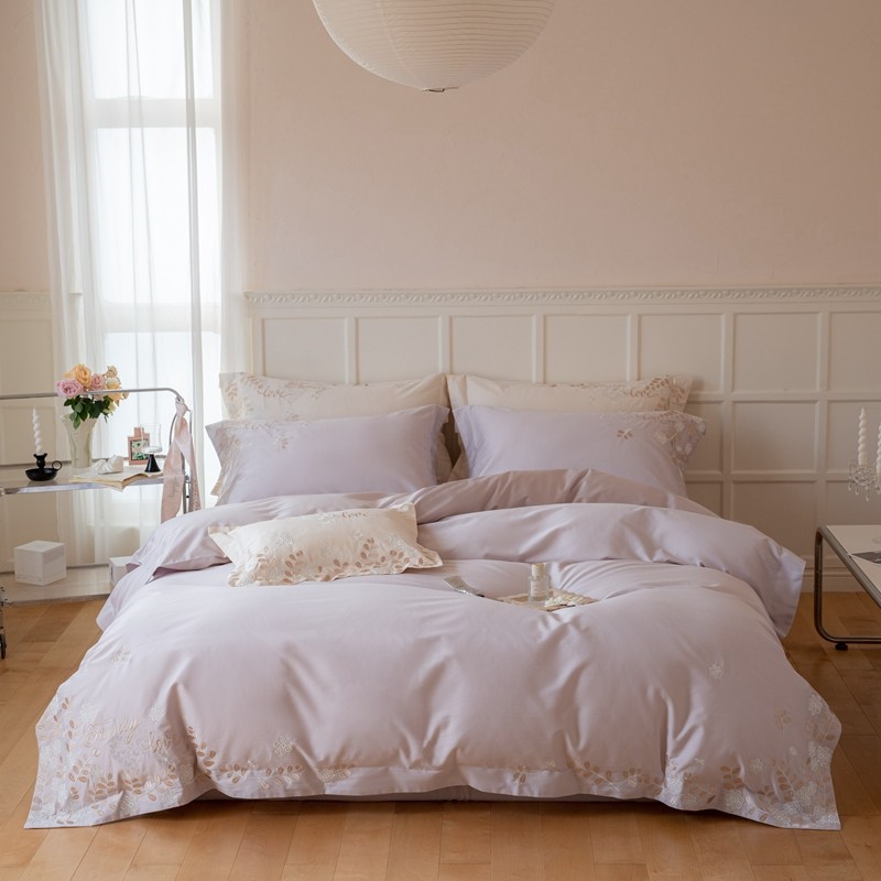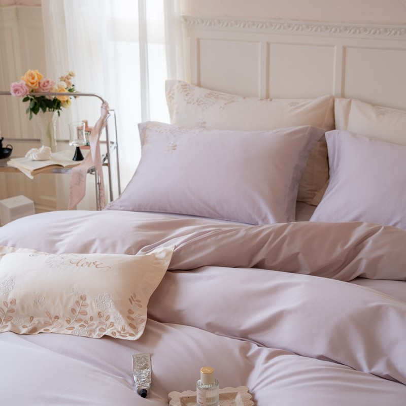 鹿班家居 100支长绒棉刺绣四件套-白月影 迷雾紫标准会员-20
