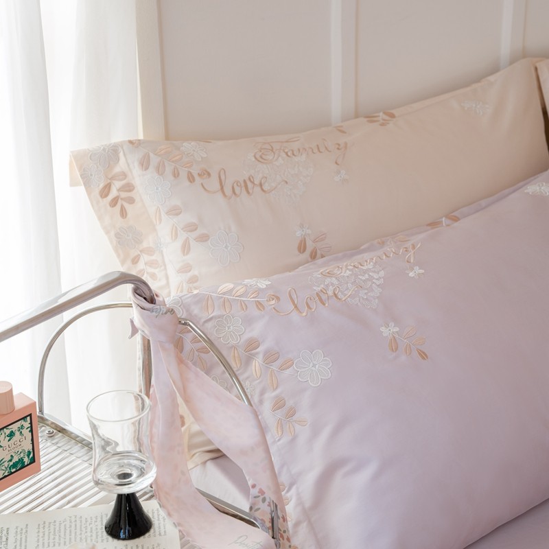 (总)鹿班 2024新款100支长绒棉精致刺绣四件套-情迷莫斯科 标准会员-20,情迷莫斯科-粉色,情迷莫斯科-黄柚色