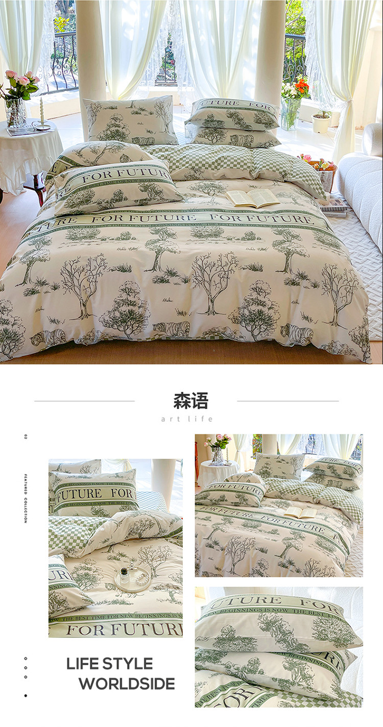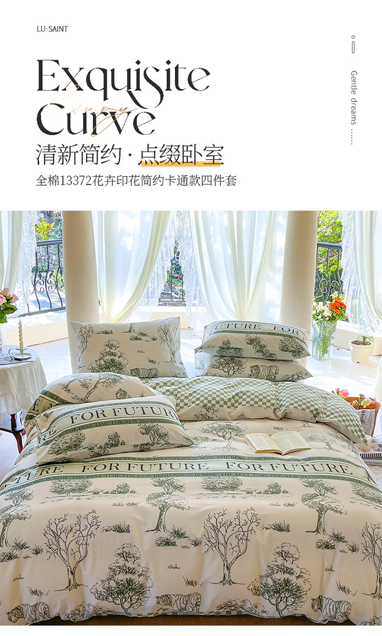 星巴k家纺2023新款全棉13372花卉印花简约卡通款多规格四件套森语