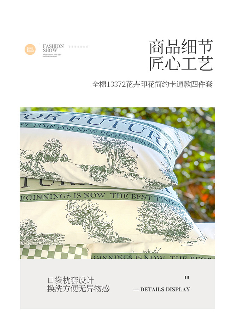 商品名称:星巴k家纺2023新款全棉13372花卉印花简约卡通款多规格四件套森语