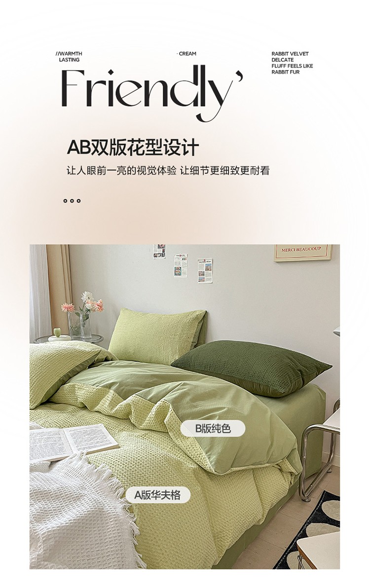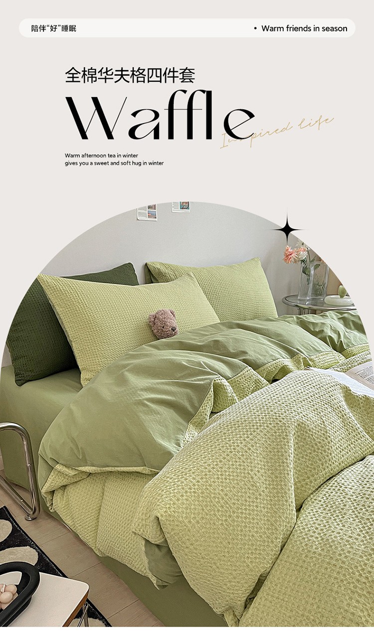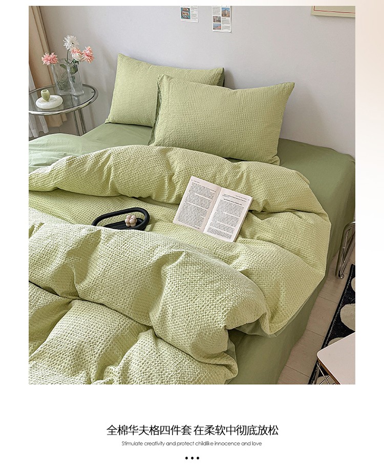 雅居纺 2023新款全棉华夫格四件套 华夫格果绿